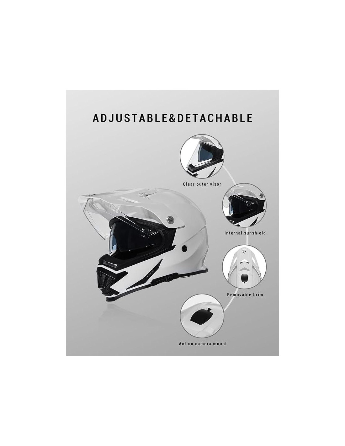 - DISEÑO VERSÁTIL Y ESTILOSO: Este casco está diseñado para la versatilidad, adecuado tanto para aventuras en carretera como fuera de ella. Su diseño elegante y moderno, disponible en una variedad de colores y gráficos, combina estilo con funcionalidad, convirtiéndolo en una elección perfecta para cualquier piloto aventurero.