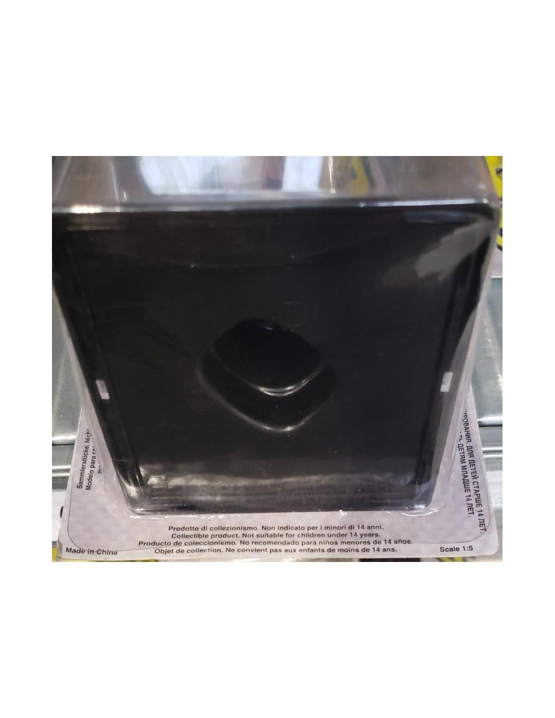 - Cada casco está atornillado a una base y presentado en una caja de exhibición