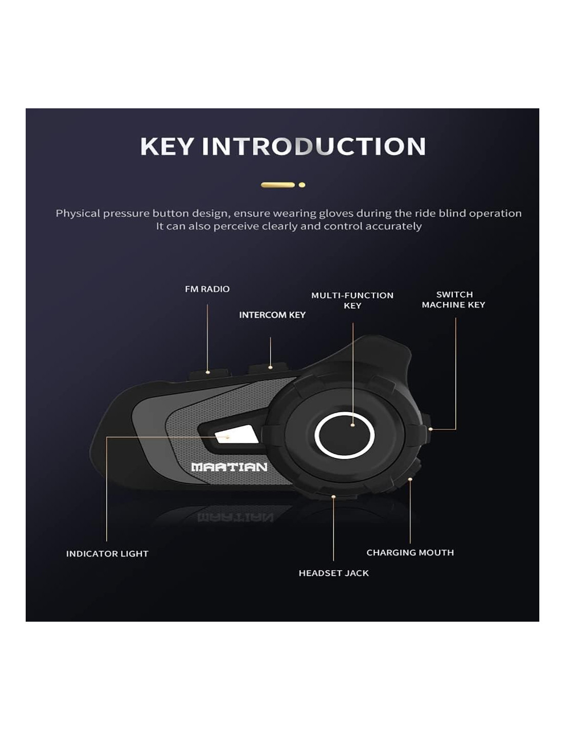 - El auricular Bluetooth para motocicleta soporta hasta 3 intercomunicadores de pilotos, comunicación de 800 metros, 10 horas de tiempo de conversación telefónica, 7 horas de conversación intercomunicador y 300 horas de tiempo en espera;