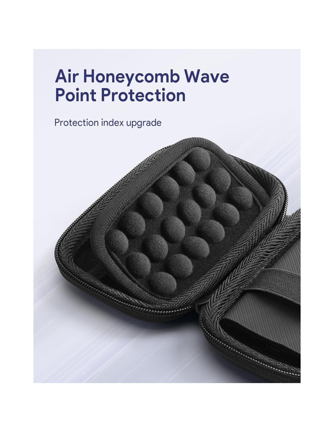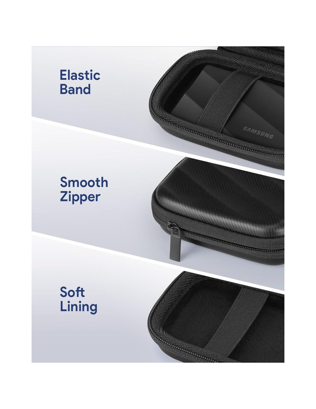 - Protección de Doble Capa: La carcasa exterior está hecha de material EVA resistente al agua y a impactos, y el acolchado tiene un diseño de puntos de choque, haciendo que el SSD sea seguro para su uso con su carcasa exterior resistente y suave forro interior