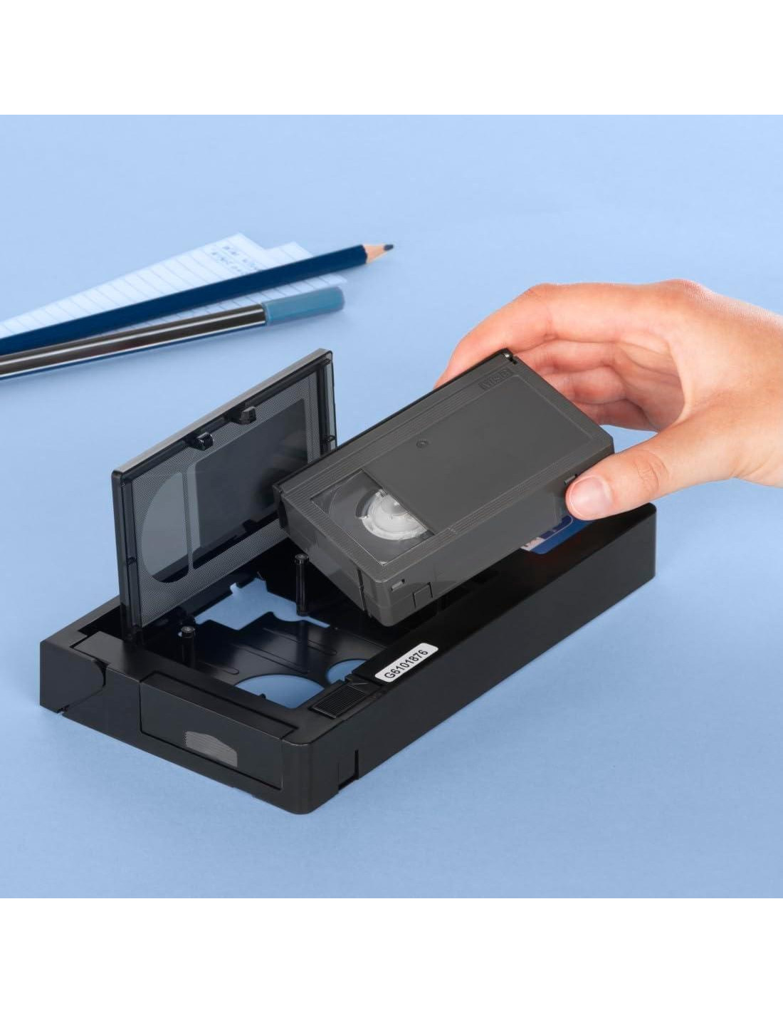 - Fácil de usar: inserte el casete en el adaptador, cierre la tapa, reproduzca automáticamente la cinta de video en formato VHS utilizando el motor alimentado por batería