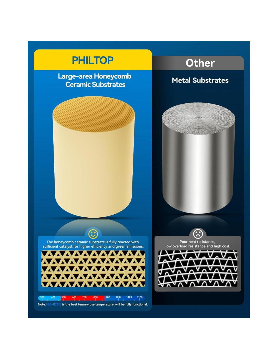 - [ALTO RENDIMIENTO DE FLUJO] --- Nuestros convertidores catalíticos están construidos para cumplir con las especificaciones OEM. También cuentan con un diseño de alto flujo para aumentar la eficiencia de conversión y la potencia del vehículo sin sacrificar la tasa de flujo.