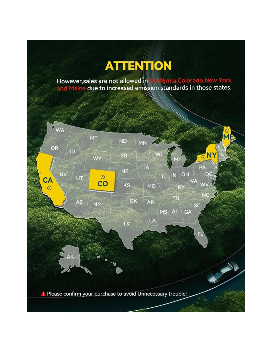 - [CUMPLIMIENTO CON EPA] --- Los convertidores catalíticos de ajuste directo cumplen con los estándares de la EPA. Por lo tanto, pueden ser utilizados en la mayoría de los estados excepto California, Maine y Nueva York, no son legales para su uso en vehículos que deben cumplir con los estándares de emisiones de CA.