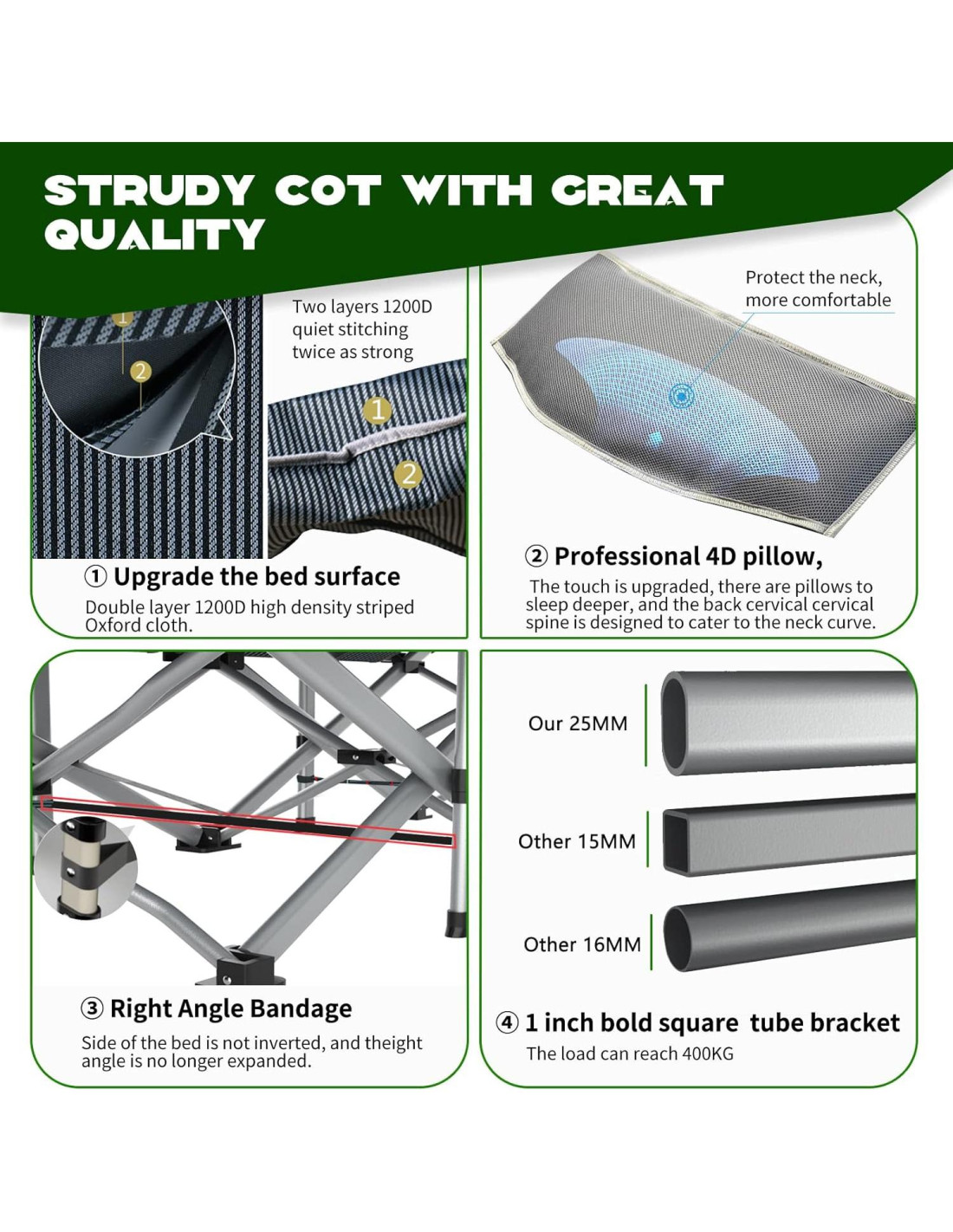 - Cama de Camping Plegable de Alta Resistencia soporta hasta 272-399 kg, hecha de un fuerte marco de acero cuadrado y tubo más grueso