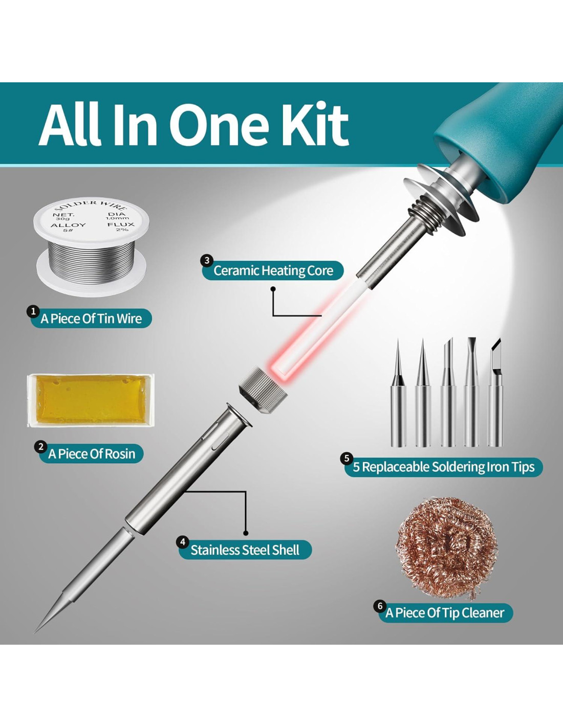 - Rendimiento de Alta Potencia de 60W: Proporciona un calentamiento rápido (alcanzando 600F/315C en segundos) y control de temperatura estable para una soldadura eficiente. Perfecto tanto para electrónica delicada como para aplicaciones de alta demanda.