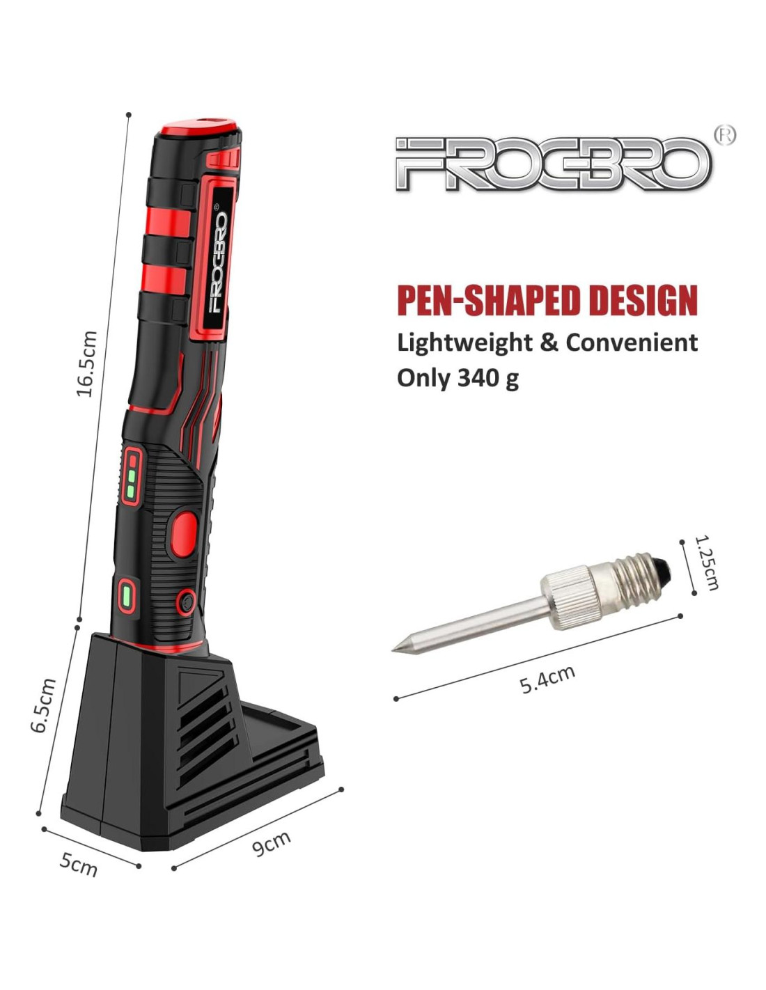 - PAQUETE INCLUIDO 1 x soldador recargable inalámbrico, 1 x punta de soldadura, 1 x soporte para soldador, 1 alambre de soldadura, 1 x cable de carga tipo C, 1 x esponja de limpieza. El tamaño del producto es 8 pulgadas (20,32 cm), con un peso de menos de 12 onzas (0,34 kg), este es un soldador portátil muy conveniente, proporcionamos garantía de calidad, si tienes alguna pregunta, no dudes en contactarnos. Nuestro soldador inalámbrico será la herramienta de soldadura ideal para que trabajes. ¡Te mereces lo mejor!