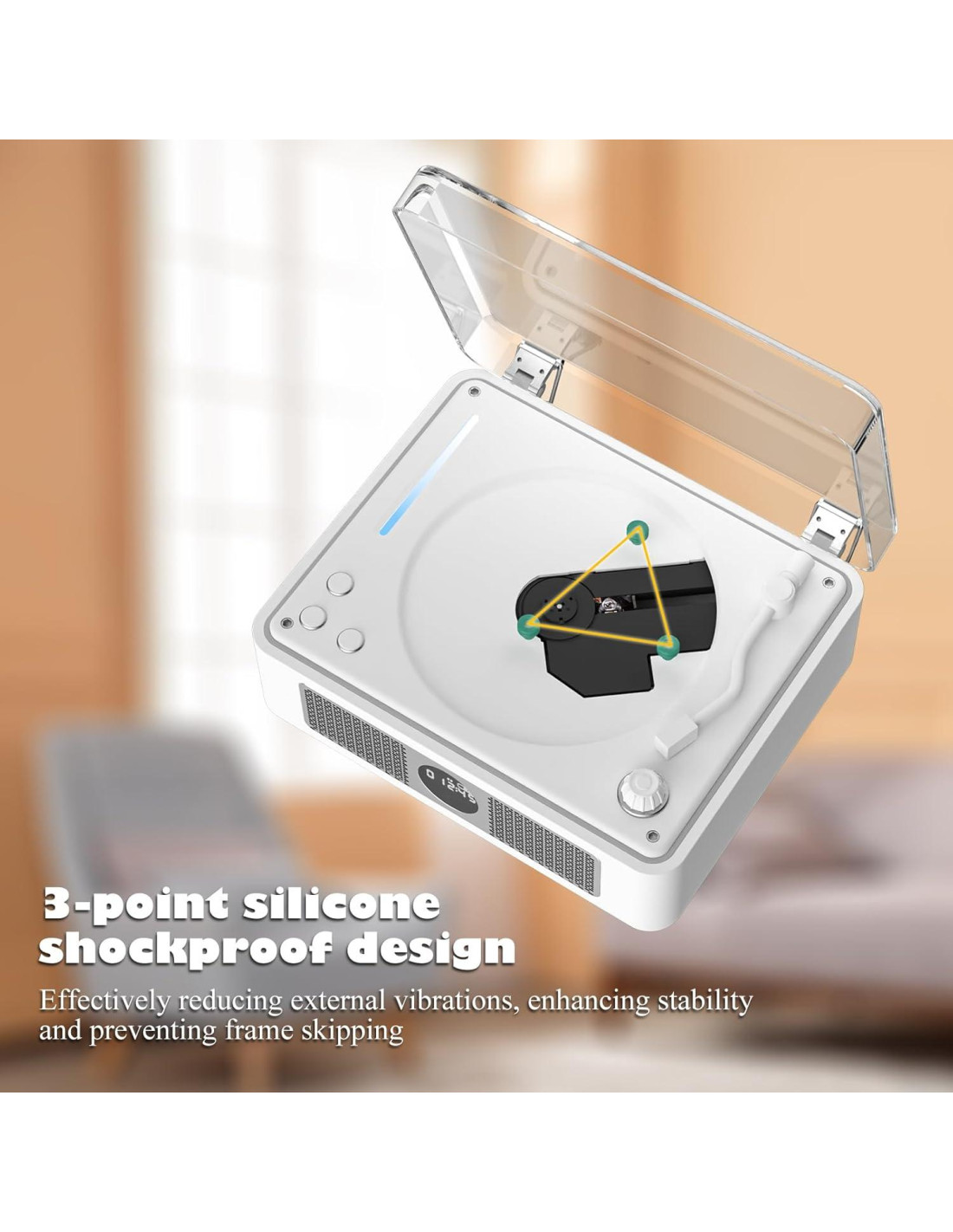 En un mundo de streaming y descargas digitales, hay algo atemporal en la alegría táctil de insertar un CD o DVD. En THINKYA, celebramos la nostalgia y la calidad inigualable de los medios físicos al crear reproductores de CD portátiles, mini reproductores de DVD y dispositivos audiovisuales que combinan el encanto retro con la conveniencia moderna. Creemos que la música y las películas no son solo entretenimiento, son recuerdos. Este reproductor de CD de escritorio con altavoz es un diseño multifuncional. La característica más especial son las luces LED RGB coloridas. Las luces coloridas cambian automáticamente. Las luces realmente te traerán una atmósfera de fiesta. También puede ser una luz nocturna. La apariencia general está inspirada en el diseño de un tocadiscos retro. Solo necesitas mover el brazo del tono para reproducir música automáticamente. También soporta entrada USB y salida de audio óptica y funciones de salida de auriculares. Modelo: Y11 Voltaje de entrada: 5V-2A Batería: 2600 mAh Tiempo de carga: Aproximadamente 3H Tiempo de reproducción: Aproximadamente 4-8H Tamaño portátil: 21.0x17.0x7.7cm Peso ligero: 1.0kg Altavoz: 4-2*2W (Cavidad de sonido independiente) Soporte de formato de CD: CD-DA, CD-R, MP3 Soporte de formato USB: MP3/WMA/WAV/APE/FLAC Interfaz: Audio de 3.5mm, USB, Óptico, Auriculares, Carga USB-C Modo de reproductor: Reproducción de CD, Bluetooth, USB, AUX, Óptico Reproductor de CD x 1 Control remoto de reproductor de CD x 1 Cable USB-C de reproductor de CD x 1 Cable AUX de 3.5mm de reproductor de CD x 1 Manual de reproductor de CD x 1