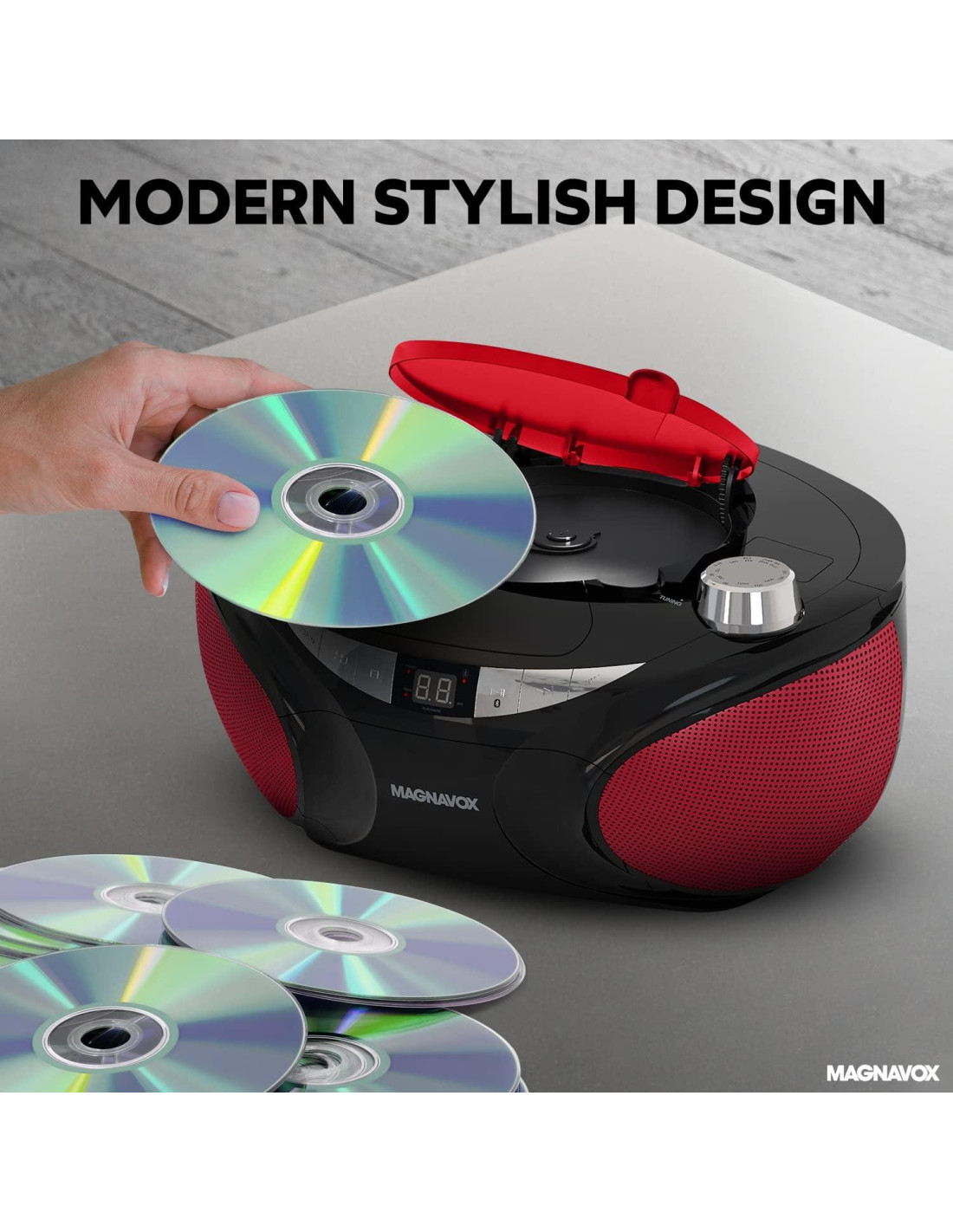 - Magnavox MD6949-BK Reproductor de CD Portátil de Carga Superior con Radio Estéreo AM/FM y Tecnología Inalámbrica Bluetooth en Negro | Compatible con CD-R/CD-RW | Pantalla LED |