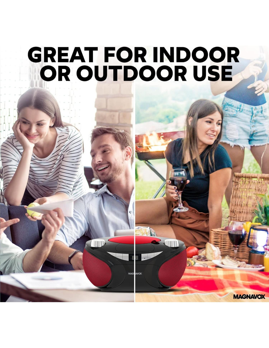 - BLUETOOTH: Los altavoces Magnavox mantienen la fiesta en marcha, llueva o truene. Experimenta una experiencia de audio premium en tu oficina, dormitorio, sala de estar o cocina. Conéctate a tu smartphone, tableta u otro dispositivo de audio a través de Bluetooth o el puerto Aux para escuchar tu música, videos o juegos dondequiera que vayas. Este sistema de altavoces Bluetooth proporciona un audio premium que seguramente apreciarás.