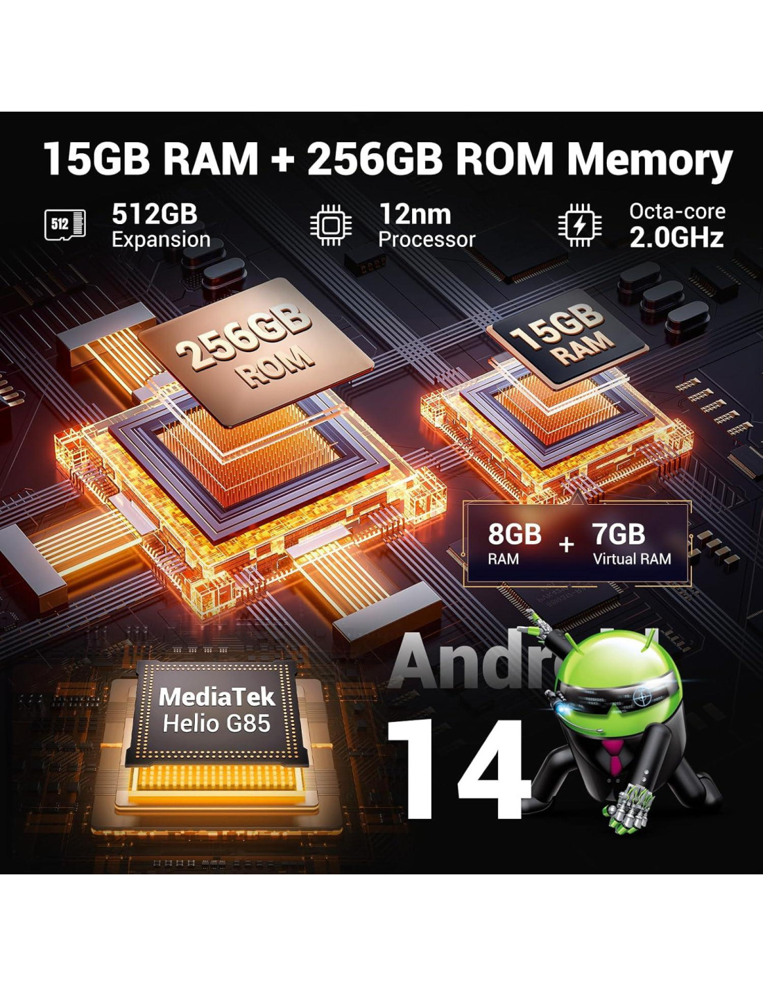 - Amplio espacio de almacenamiento: El teléfono resistente está impulsado por un procesador octa-core MTK6769 y tecnología de expansión de RAM, que puede expandir la RAM de 8GB a 15GB, capaz de realizar múltiples tareas intensas para garantizar una experiencia de usuario fluida. 256GB de almacenamiento interno, hasta 512GB, para almacenar fotos, videos o canciones a tu gusto, sin compromisos.