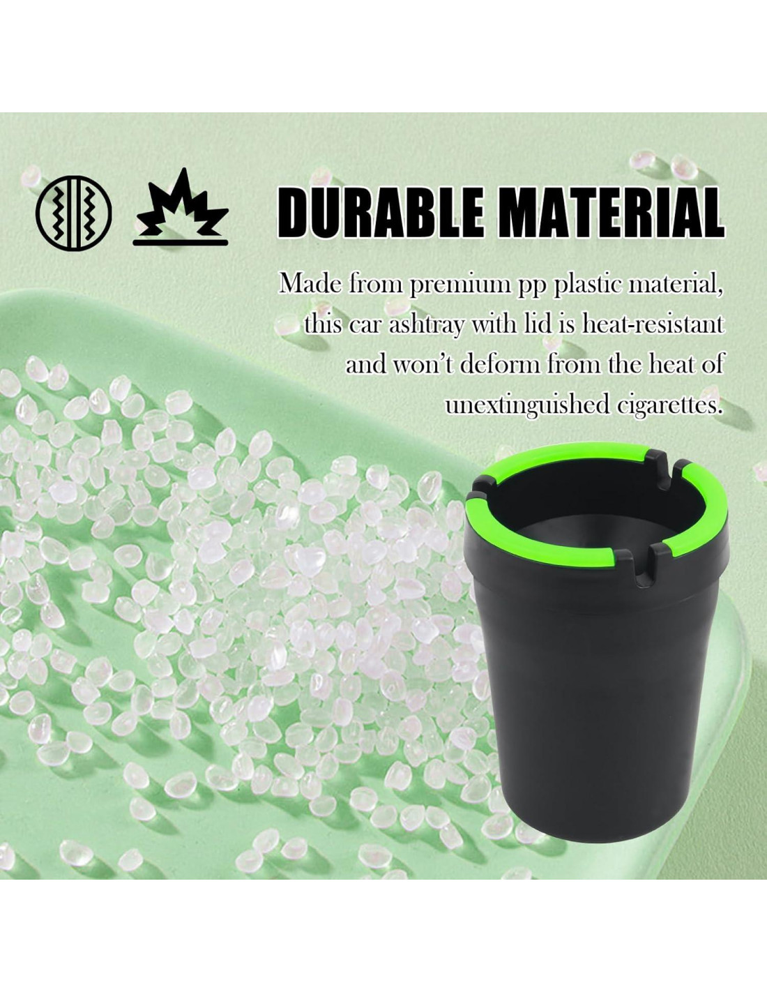 - MATERIAL PREMIUM: Fabricado con PP duradero, este cenicero portátil equilibra la resistencia con una construcción ligera. La estructura robusta resiste el desgaste del uso diario mientras se adapta a las vibraciones de la carretera, evitando el desgaste o la rotura incluso en viajes irregulares