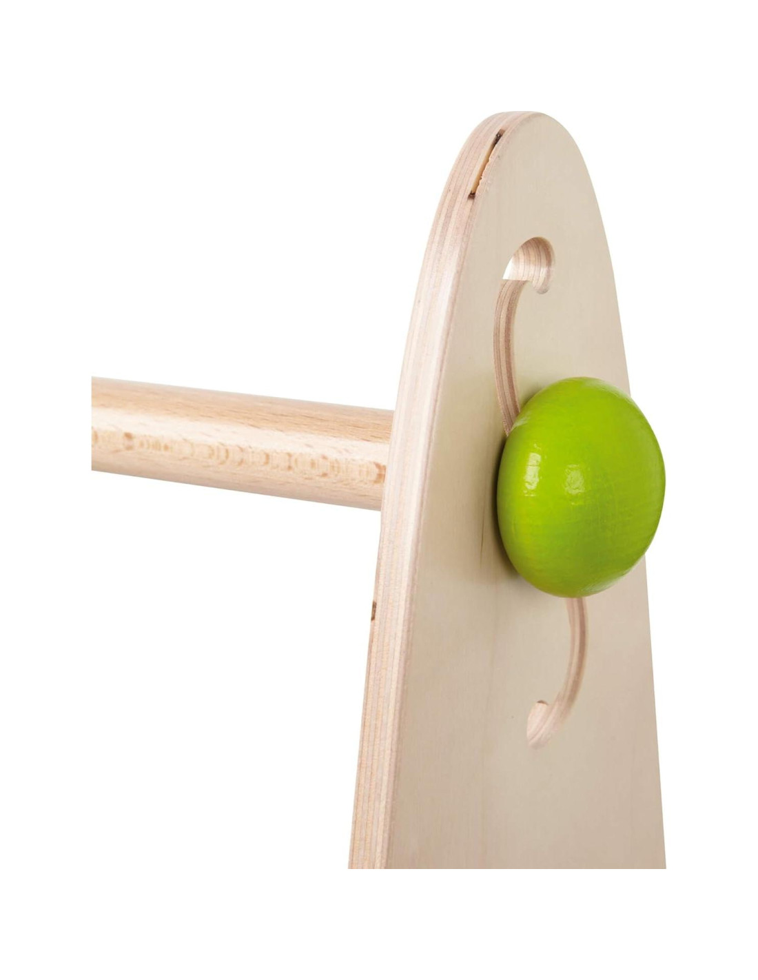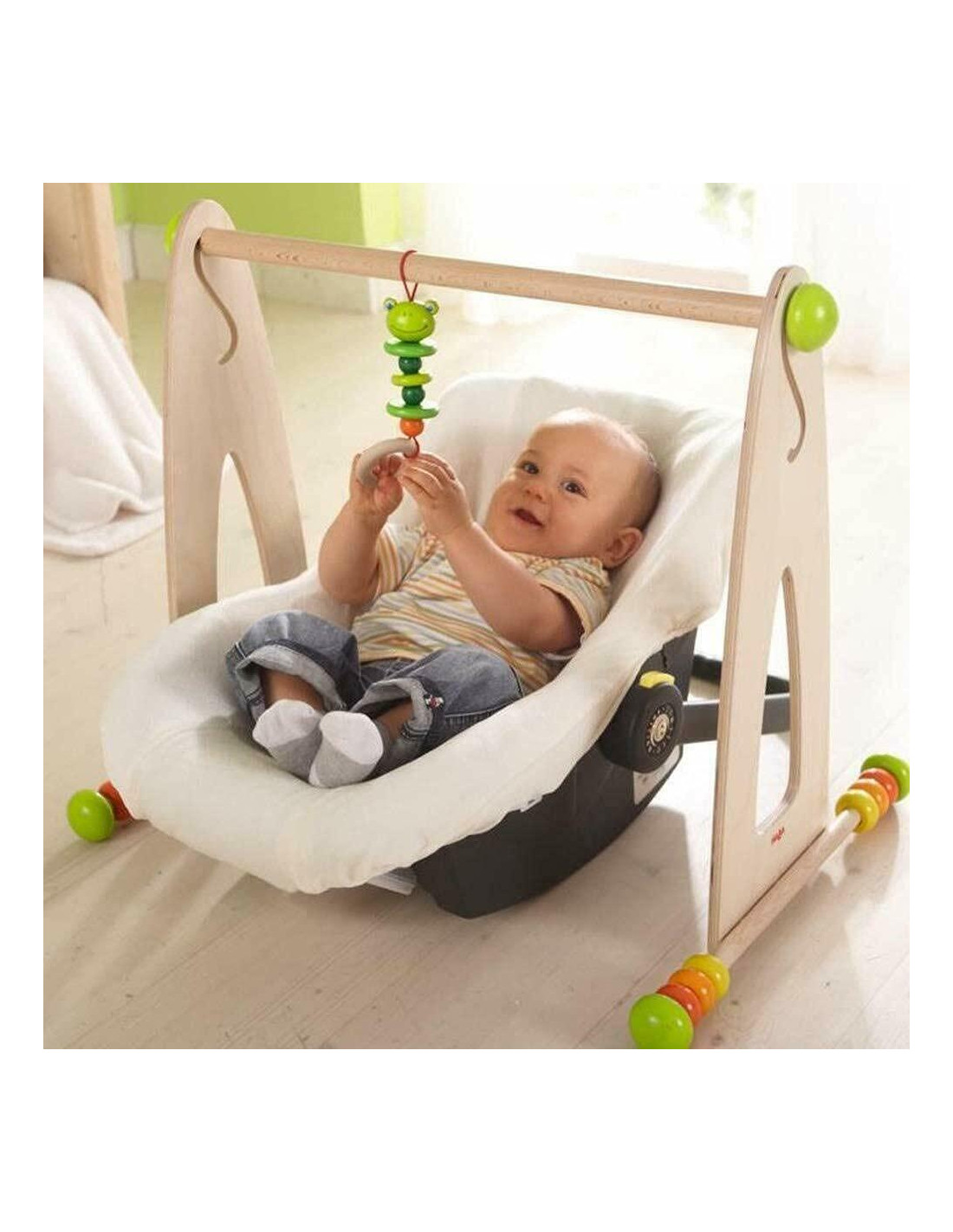 - incluye una rana sonajero hecha de madera de haya que cuelga para que el bebé alcance. Hay mucho espacio para agregar aún más elementos colgantes.