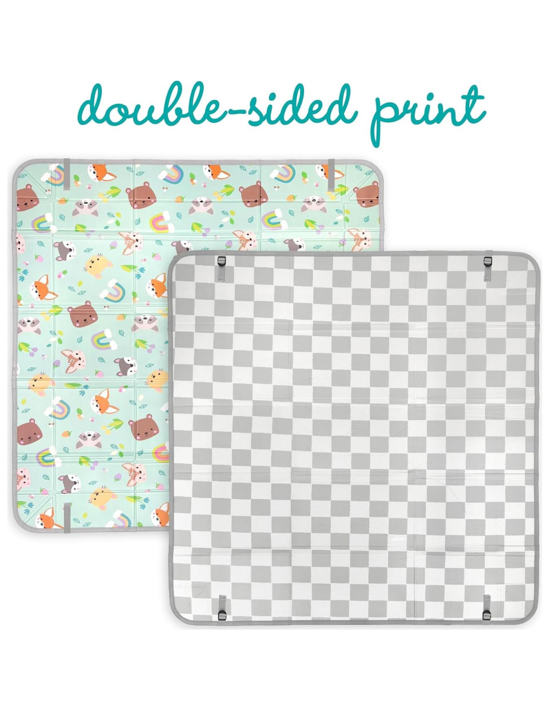 - DISEÑO REVERSIBLE PARA ALTA VIBRANCIA O ALGO MÁS SUTIL: Dale un toque a tu tiempo de juego con el brillante y colorido patrón de bosque en un lado y una impresión de cuadros sutil en el otro. ¡Puedes cambiarlo fácilmente cuando te apetezca!