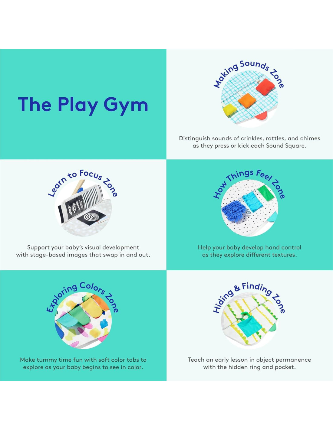 El Gimnasio de Juego: El Gimnasio de Juego de Lovevery es el primer gimnasio de juego para todas las etapas de aprendizaje de tu bebé, proporcionando lo que tu bebé quiere ver, tocar y hacer a medida que su pequeño yo comienza a emerger. Incluye todo lo que necesitas, desde golpear hasta morder y aprender a concentrarse, para el primer año de juego de tu bebé. Un año completo de juego en una caja. Diseñado por expertos para el cerebro en desarrollo del bebé. Características: - Para edades 0+, desde recién nacido hasta niño pequeño - Piernas de madera de origen sostenible para estabilidad. - Fácil de montar y desmontar sin herramientas requeridas. - Desarrollo educativo, motor grueso y sensorial - Cinco zonas de desarrollo en la Alfombra de Juego que revelan o ocultan para prevenir la sobreestimulación y promover el aprendizaje: Aprender a concentrarse; Hacer sonidos; Cómo se sienten las cosas; Esconder y encontrar; Explorar colores. - Sistema de tarjetas en blanco y negro, objetos, caras y espejo que se pueden intercambiar en la zona Aprender a Concentrarse. - Accesorios removibles para el desarrollo motor basado en etapas: Bola Montessori de alto contraste de algodón orgánico, anillo de golpear de madera de origen sostenible y mordedor de algodón orgánico. - Se convierte en fortaleza de juego con la cubierta de espacio de juego para juego imaginativo. - Guía de juego con inspiración y actividades de especialistas en desarrollo infantil. - Tarjetas de aprendizaje impresas con tinta de soya - Juguetes para morder hechos con 100% algodón orgánico - Alfombra de juego hecha con materiales de poliéster lavables a máquina - Tamaño del producto (pulgadas): 24h x 38w x 43l con zonas de alfombra cerradas; 24h x 50w x 47l con zonas de alfombra abiertas. - Alfombra de juego para bebés patentada - El estilo puede variar