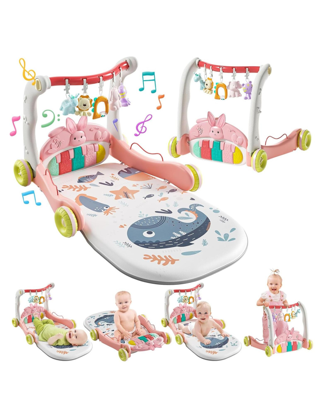 - Estilo: Alfombra de juego circular para bebés con esquema de color rosa pastel, que presenta un piano de juego, juguete de dentición desmontable y juguetes colgantes, diseñado tanto para actividades estacionarias como para movilidad de andador.