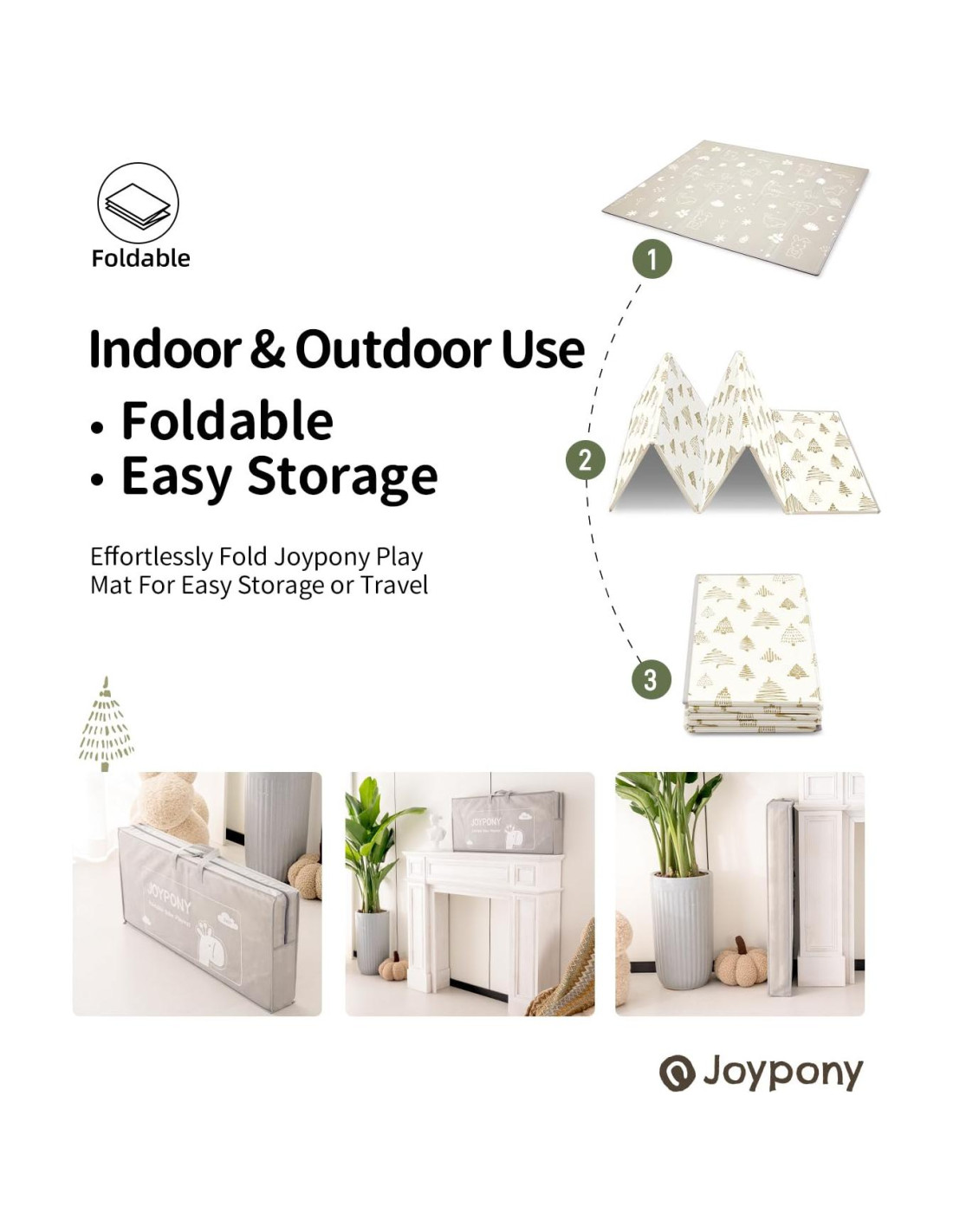 - [SEGURIDAD Y COMODIDAD - PROMESA PRINCIPAL] - Hecha de material de espuma XPE de alta densidad, nuestra alfombra de juego para bebés es libre de BPA, amigable para los niños y sin olor químico, asegurando una superficie de juego suave y segura para bebés y niños pequeños. Su diseño acolchado es perfecto para proteger a los más pequeños de los pisos duros y proporcionar soporte adicional durante el tiempo de barriga. La alfombra de juego Joypony es realmente confiable, segura y está lista para usar directamente de la caja.