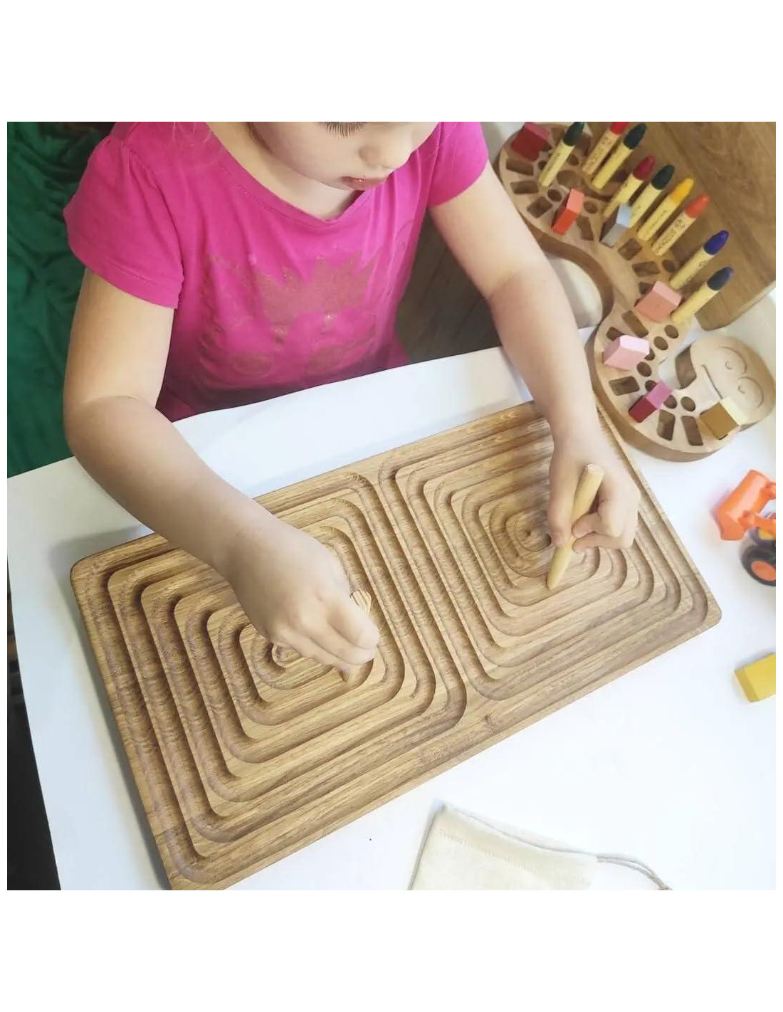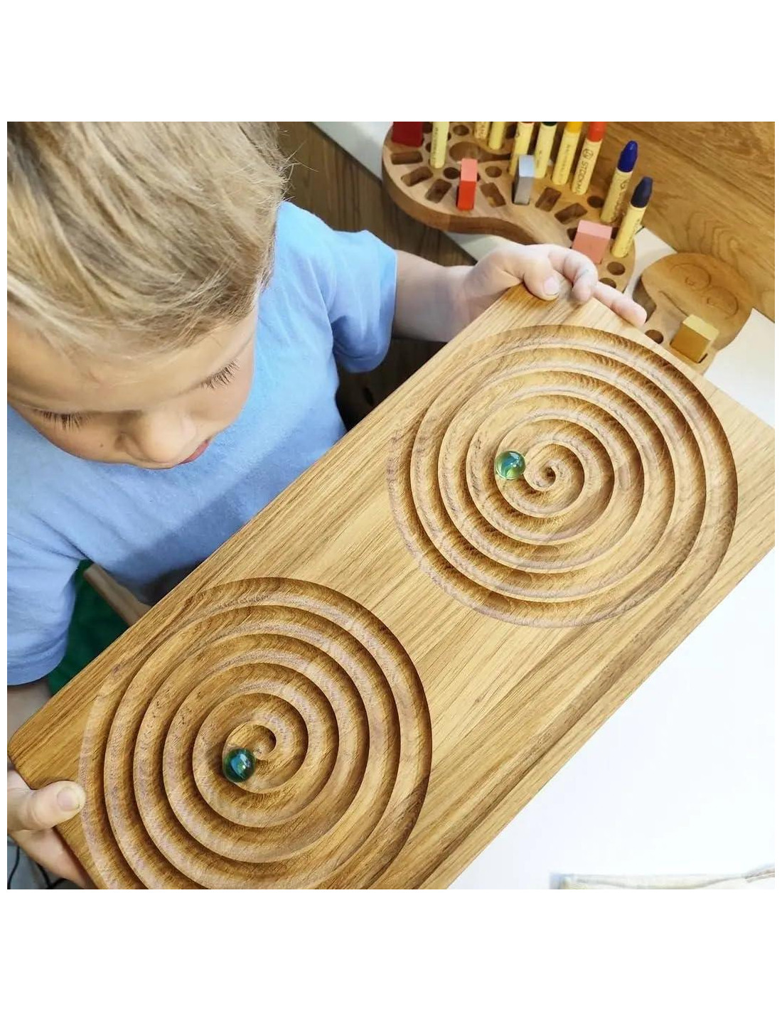 Tableros o laberintos interhemisféricos de un lado y de doble cara (reversibles) (con dos estiletes de madera y canicas incluidos) son juguetes educativos diseñados para entrenar ambos hemisferios del cerebro. Como resultado del paso por los laberintos al mismo tiempo con diferentes manos, se mejora la interacción y sincronización de los hemisferios izquierdo y derecho del cerebro. ¿CÓMO USAR? El niño traza con el estilete, dedo o toma canicas (bolas) e inserta al inicio del laberinto, pasa por todo el laberinto, primero solo con su mano derecha, luego con su mano izquierda, y luego con ambas manos al mismo tiempo. Ambos hemisferios del cerebro están involucrados en el trabajo y se sincronizan.