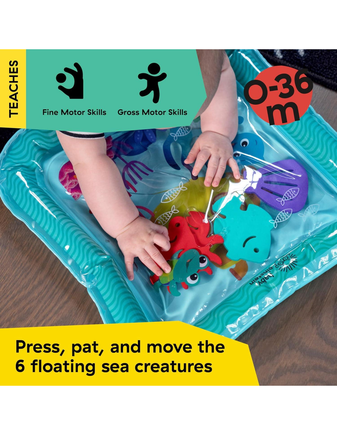 - La Alfombra Acuática Sensory Splash Ocean Explorers de Baby Einstein es una alfombra de agua rellenable que involucra al bebé en el juego sensorial mientras aprenden causa y efecto durante el tiempo boca abajo.