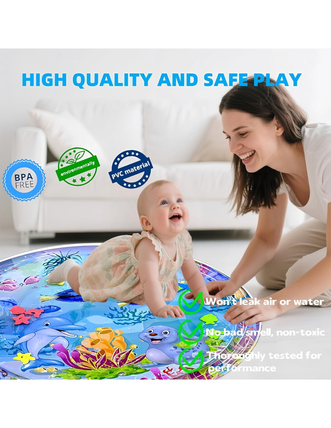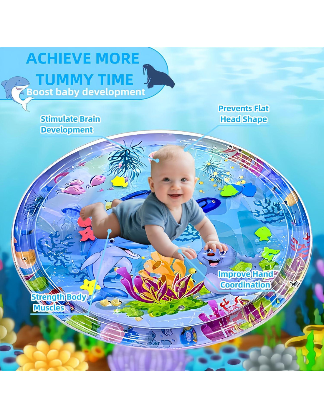 - Tema de Mundo Marino Atractivo: Captura la atención de su bebé con el vibrante mundo submarino y adorables animales flotantes en nuestra alfombra de agua para tiempo boca abajo. Este juguete sensorial fomenta horas de diversión mientras mejora la coordinación mano-ojo y estimula el desarrollo visual. Es una forma encantadora de mantener a su pequeño entretenido y comprometido durante el tiempo boca abajo