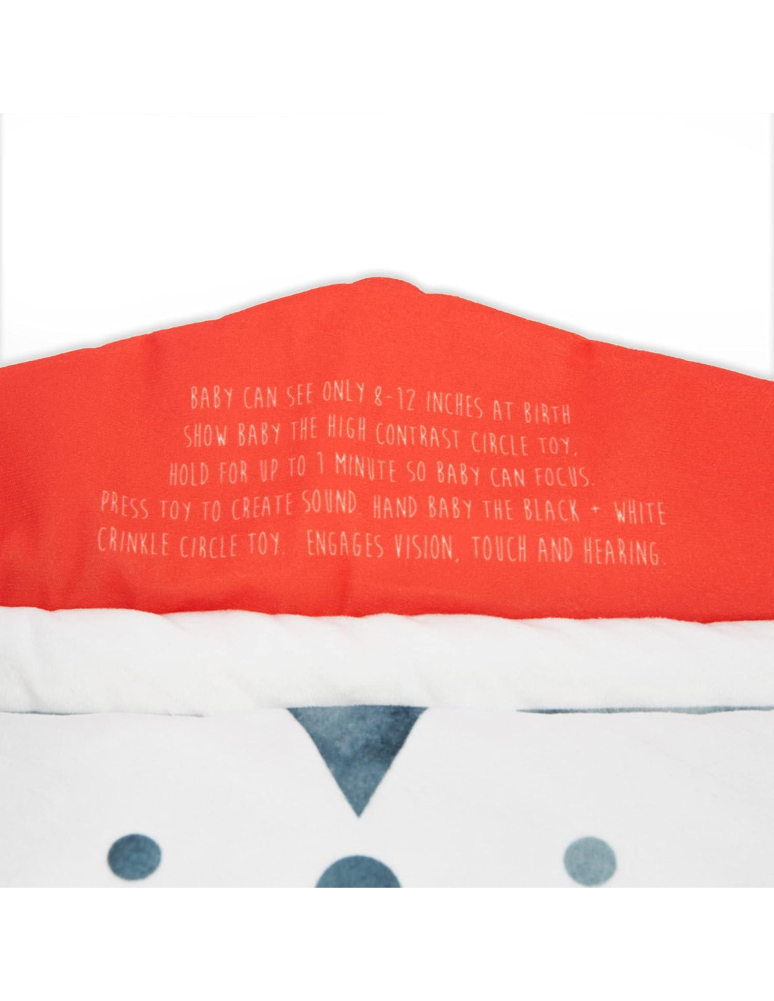 - 7 ACTIVIDADES FOMENTAN EL APRENDIZAJE A TRAVÉS DEL JUEGO: Los juguetes coinciden con las 4 zonas - Alto contraste: un pingüino sonajero y un oso sonajero. Alcanzar y escuchar: 2 conjuntos de 4 banderas crujientes. Adivina-qué: 3 solapas texturizadas de adivina-qué. Enfoque: un espejo seguro para bebés con caballete trasero para autodescubrimiento y un bolsillo para fotos para insertar tu propia foto. También incluye un cojín de soporte de 2 lados para el tiempo boca abajo. Muchos juguetes son removibles para jugar en movimiento.