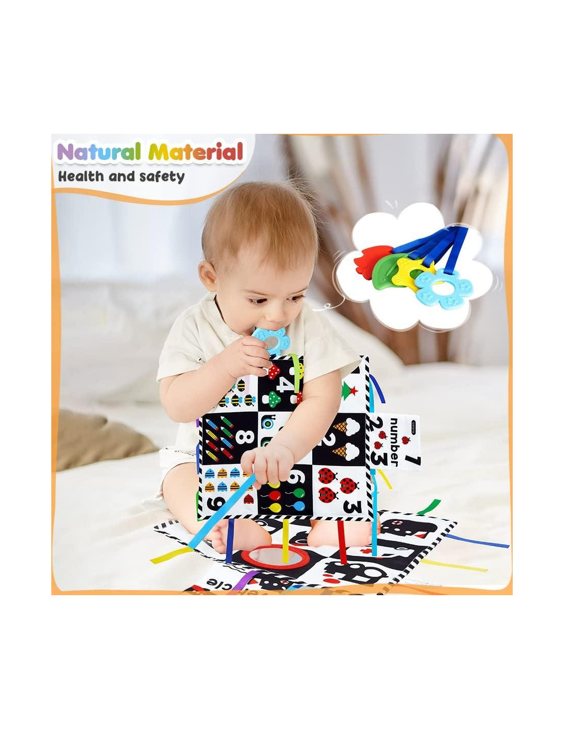 - [Entrenamiento de Estimulación Visual] Los recién nacidos son fácilmente atraídos por estos colores vibrantes y patrones audaces. Los bebés nacen con visión borrosa y gradualmente aumentan a los 3 meses. Luego pueden distinguir el alto contraste en blanco y negro. Nuestros juguetes sensoriales para bebés en blanco y negro pueden estimular eficazmente la retina y el nervio óptico del recién nacido, así como el desarrollo cerebral del recién nacido.