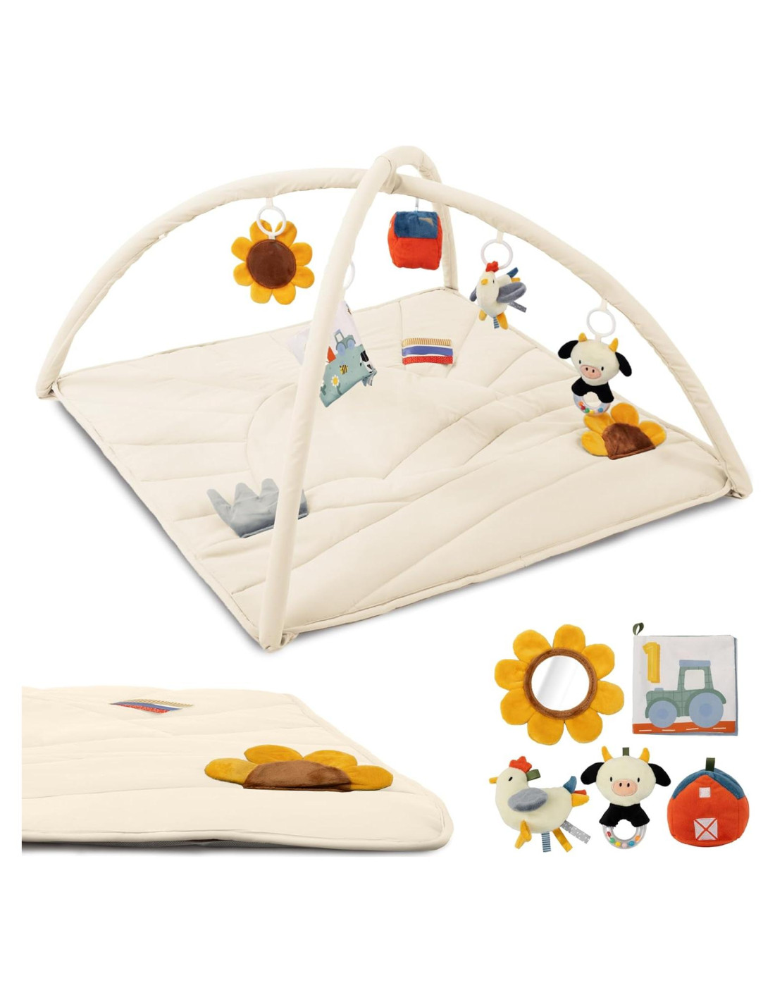 - Diseño Elegante con Juguetes Adorables: ¡Súper lindo! La alfombra para bebés cuenta con 5 encantadores accesorios de juguetes de granja. Con su moderno diseño beige, es adecuada tanto para niños como para niñas y con 88.9x88.9 cm ofrece un amplio espacio para la exploración y el juego