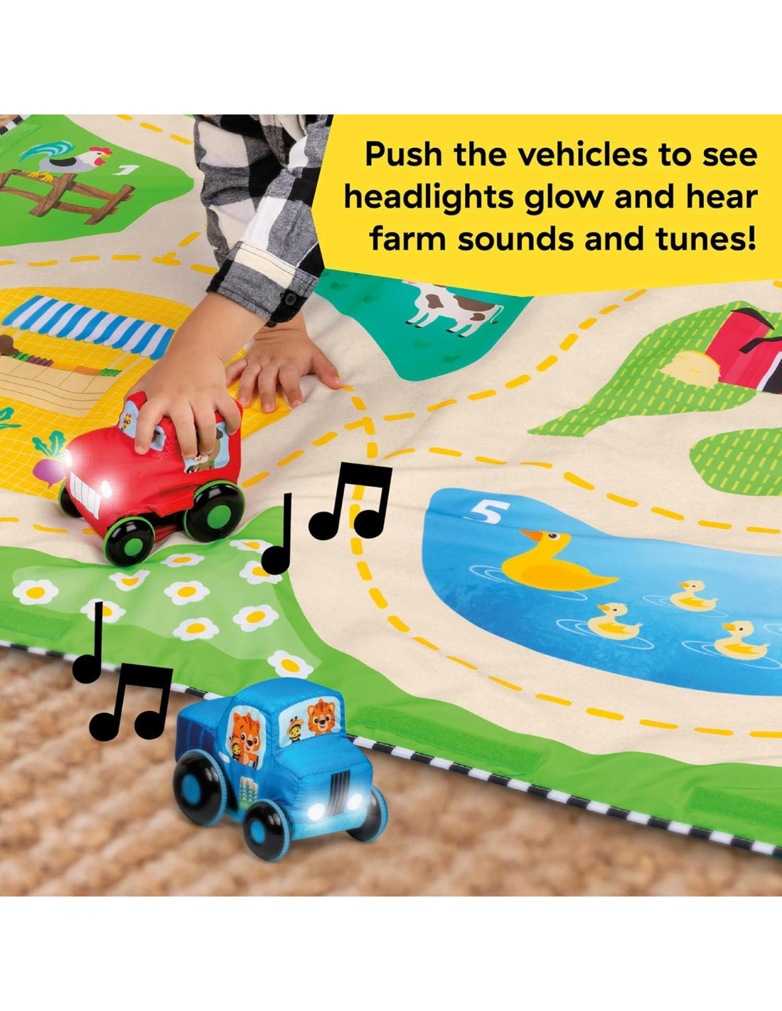- Alfombra de juego extra grande con 4 modos: tiempo boca abajo, gimnasio de actividades, modo granero con clasificador de formas y juego en la carretera; Diseñado por el fabricante número 1 de gimnasios de juego (Circana, ventas en dólares de EE. UU., Ene-Oct 2023)