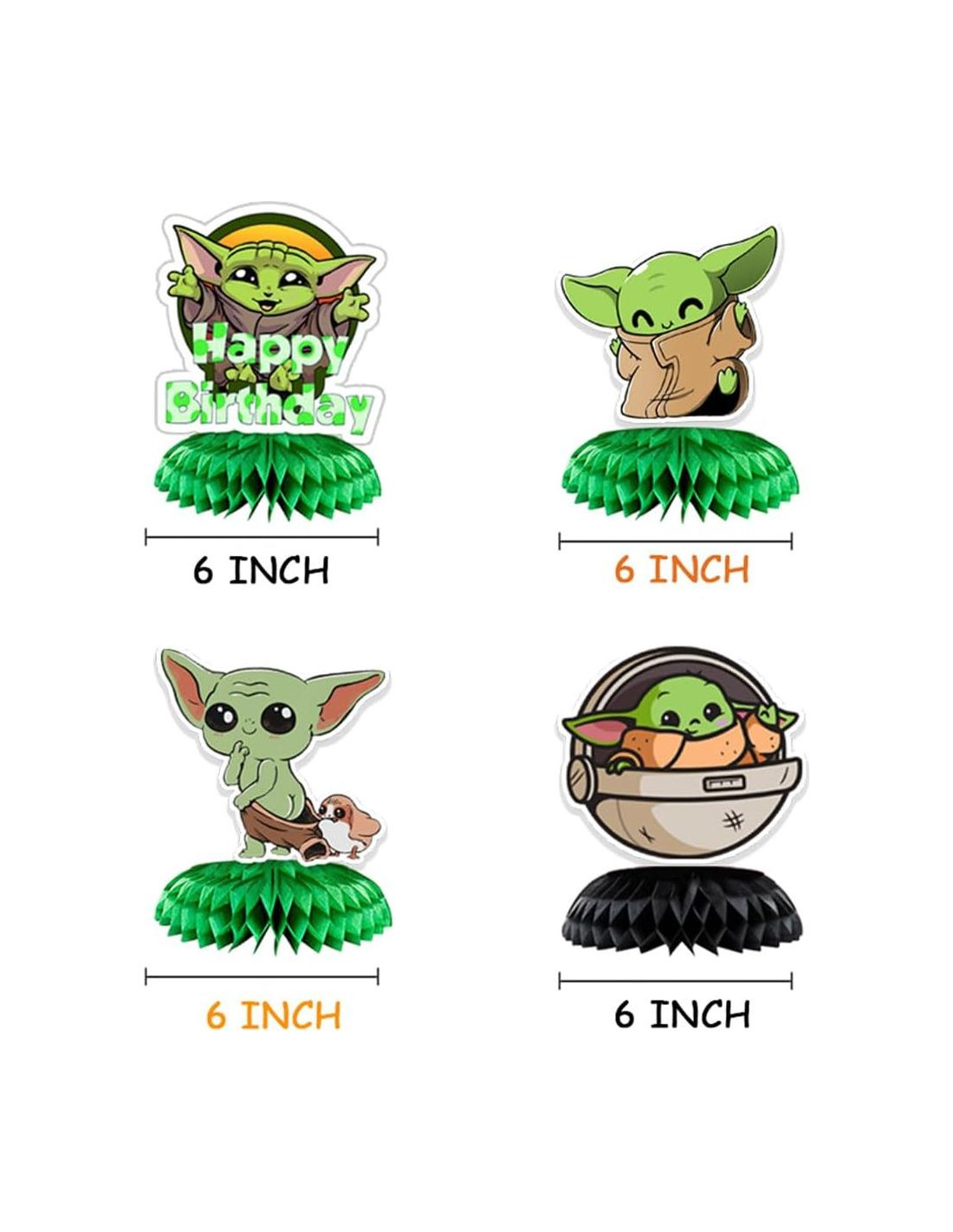 Suministros de Fiesta de Cumpleaños de Baby Yoda Centros de Mesa de Panal Nuestro kit de decoraciones para fiestas contiene 9 centros de mesa para mesas con diferentes estilos. Las decoraciones de mesa contienen muchos estilos. Usa nuestros suministros de fiesta, suficientes para atraer la atención de las personas y satisfacer diversas necesidades de decoración, combinando fácilmente con tu fiesta Material: Papel Color: Mostrar como en la imagen El paquete incluye: 9pcs x centro de mesa Fácil de usar: Características: Sin costuras, ligero, sin desvanecerse y no fácilmente deformable Material de cartulina de alta calidad de 300g Duradero y reutilizable si se almacenan bien Impresión a doble cara y orbes de panal 3D