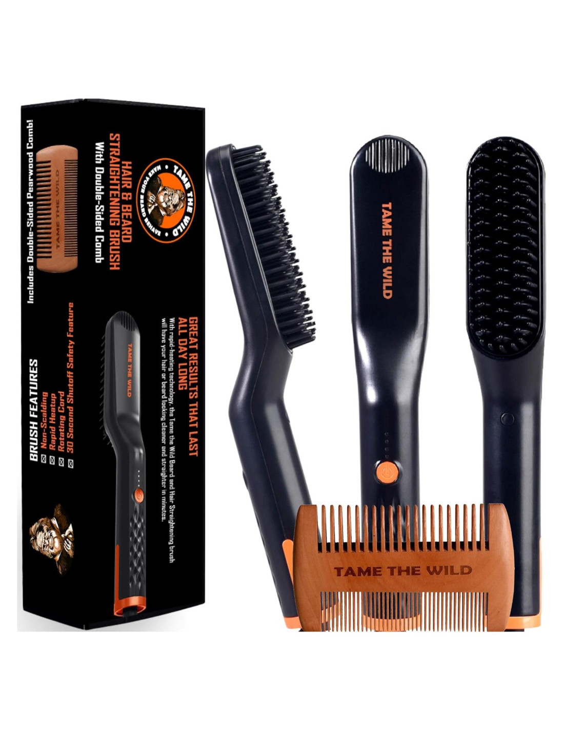 - Peine alisador de calentamiento rápido: Este peine alisador se calienta a la temperatura óptima en 30 segundos con cerdas de cerámica, asegurando una experiencia suave para barbas y cabello sin enredos