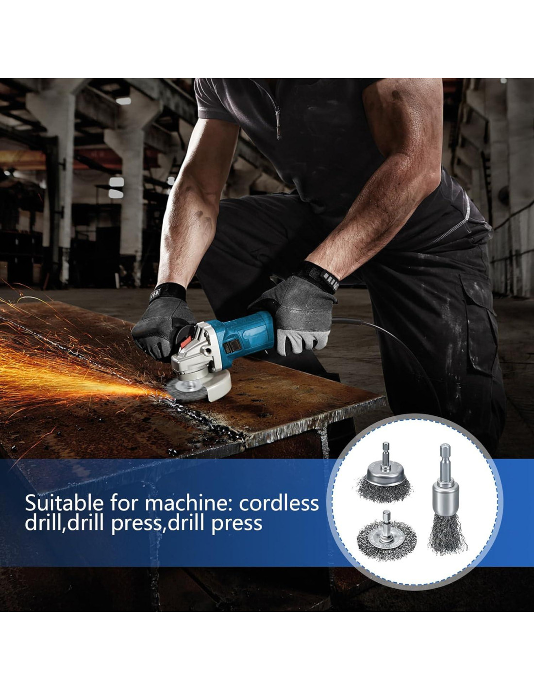 - Compatibilidad Versátil: Estos cepillos de alambre metálico para taladros se adaptan a la mayoría de los taladros eléctricos y herramientas neumáticas, estos cepillos de alambre metálico para taladros soportan velocidades de hasta 4500 RPM, lo que facilita la eliminación de óxido, despojo de pintura y trabajo de molienda