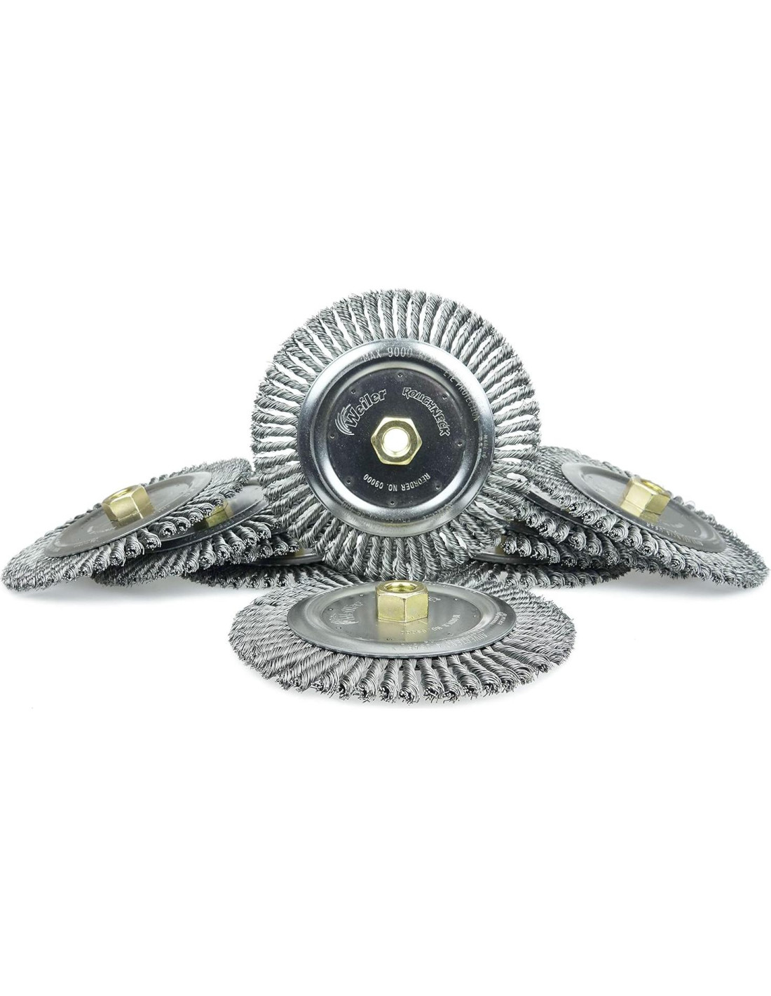 - APLICACIÓN: Adecuado para limpiar pasadas de raíz y calientes y alcanzar las esquinas. Tuerca de 5/8"-11 para uso en amoladoras de ángulo recto