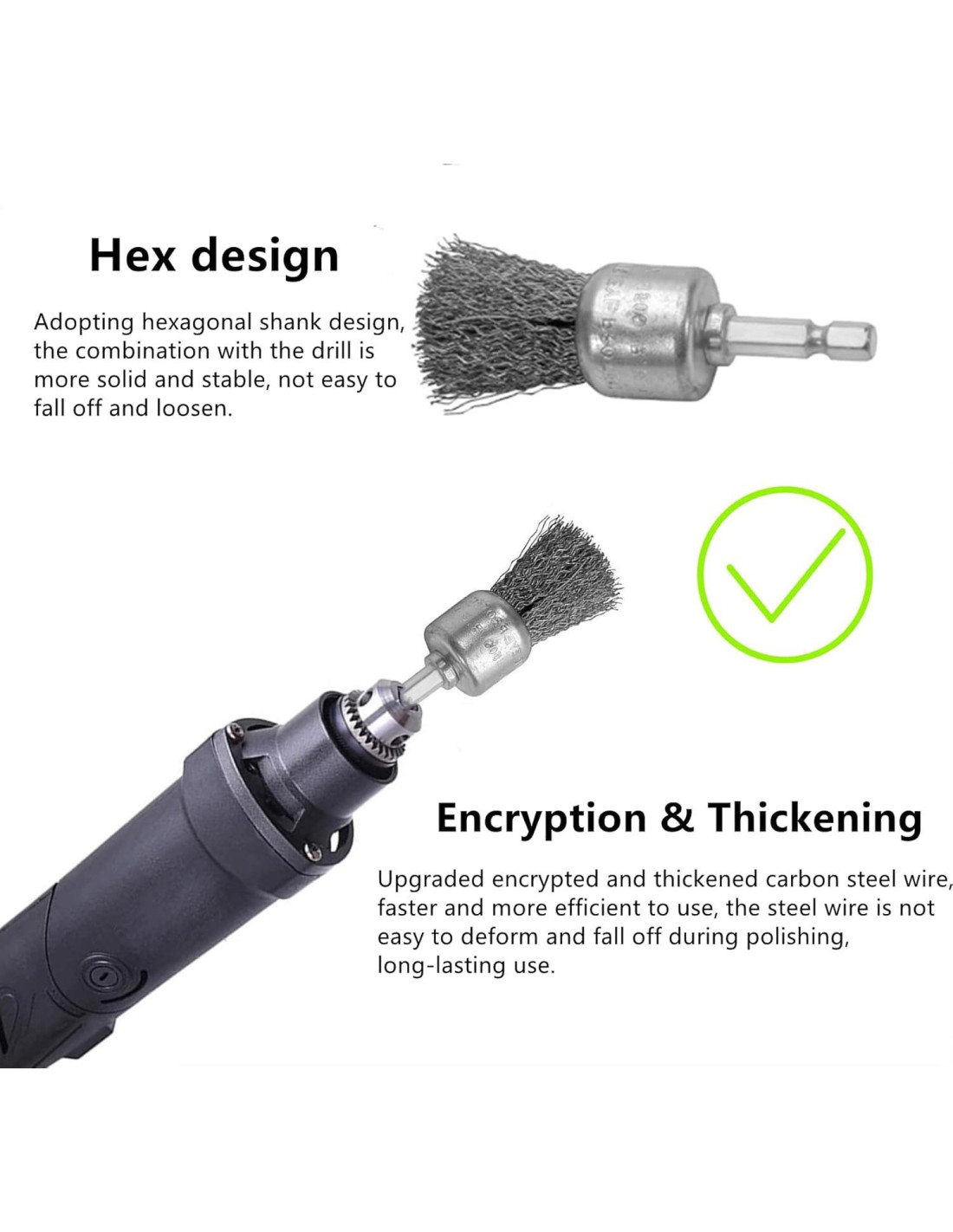 - [2pcs Cepillo de Alambre] Este cepillo de pluma está incrustado con alambre de acero a través de un proceso especial, y el alambre de acero está conectado firmemente al cuerpo de la copa y no es fácil de deformar y caer, lo que es ideal para moler o pulir.