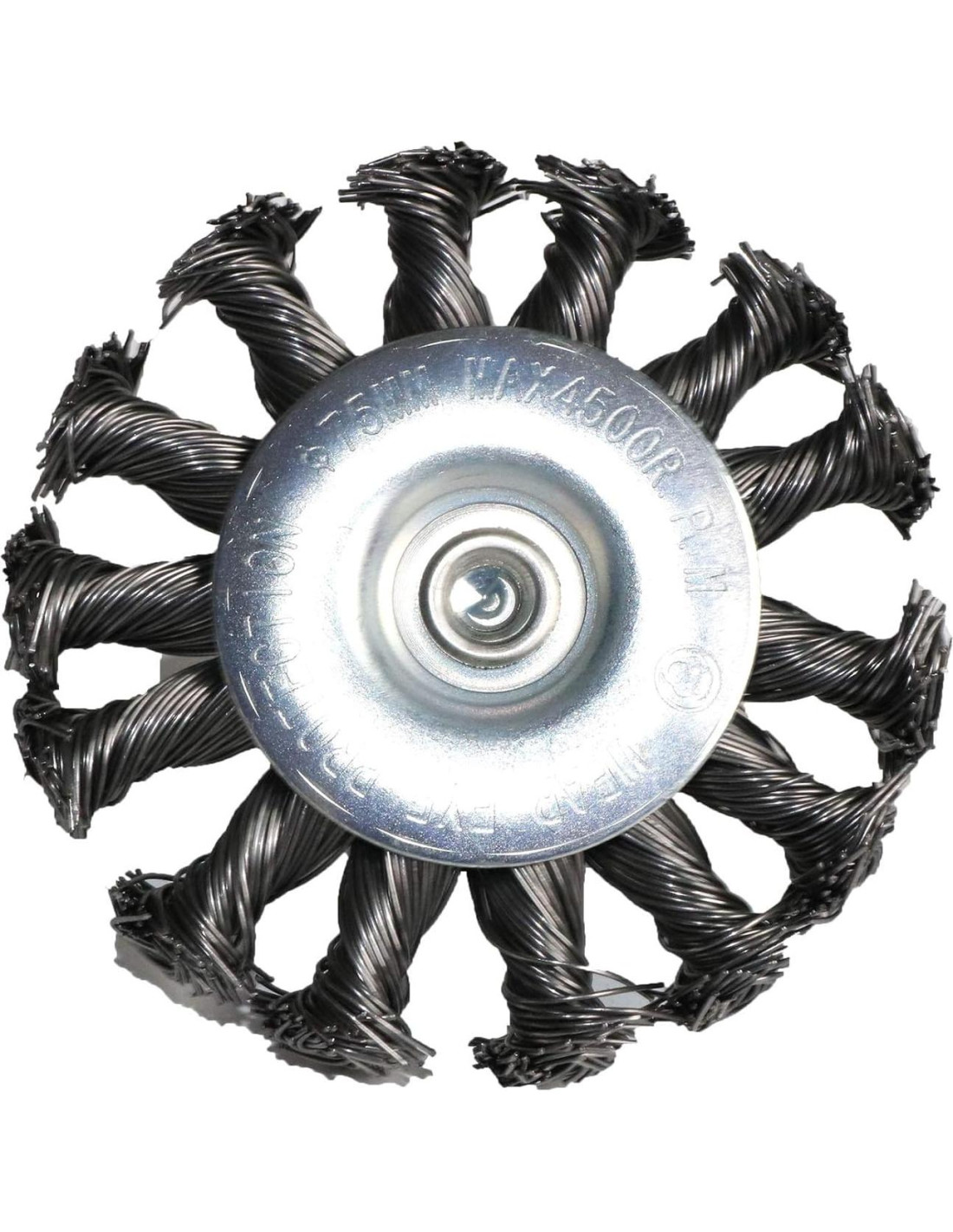 - Materiales y procesos duraderos: Estos cepillos de rueda de alambre trenzado entrelazan los alambres de acero para aumentar la resistencia a la presión y la durabilidad. Alambre de acero endurecido para reducir la rotura del alambre y una larga vida útil.