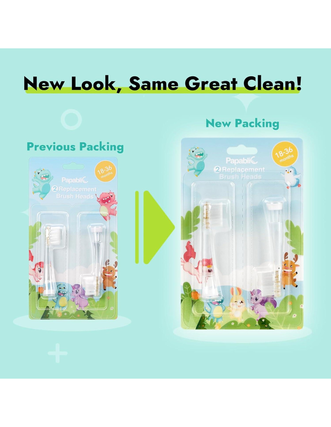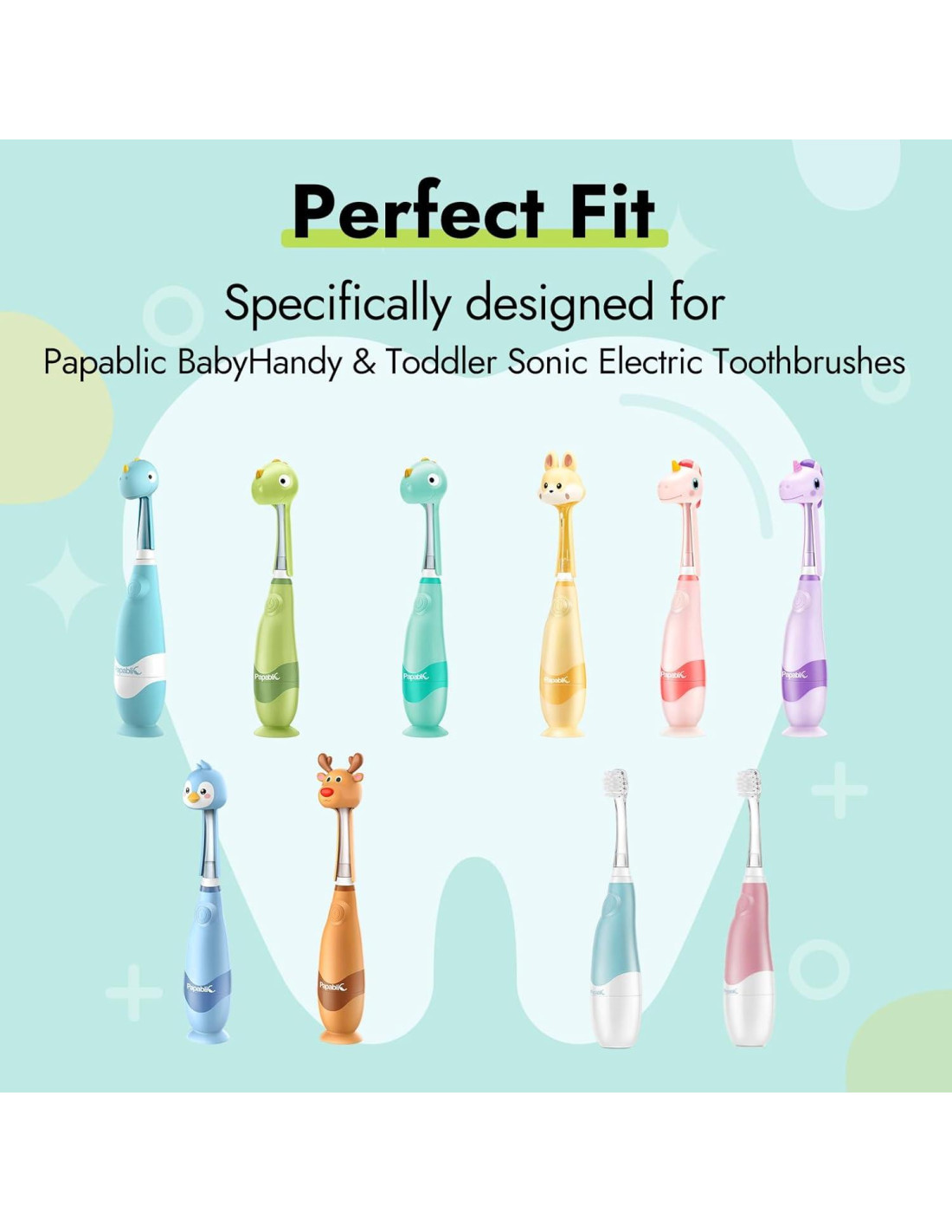 - 2 x cabezales de cepillo de repuesto para cepillos de dientes eléctricos sonoros Papablic BabyHandy y Toddler.