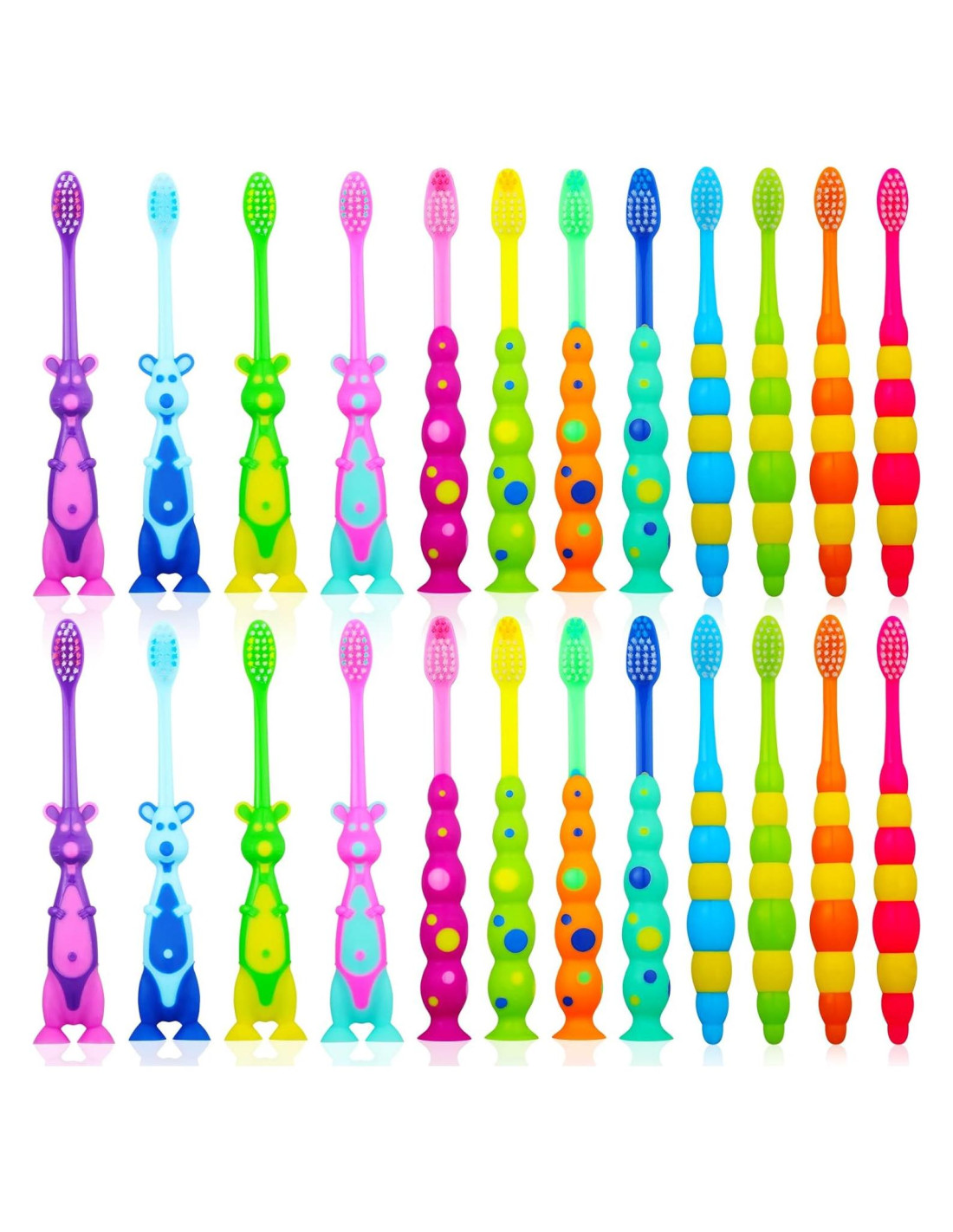 - El paquete incluye: recibirás 24 piezas de cepillos de dientes para niños en colores brillantes, patrones lindos y adorables despertarán el interés de los niños y pequeños en cepillarse los dientes, y con 24 cubiertas protectoras para facilitar el transporte