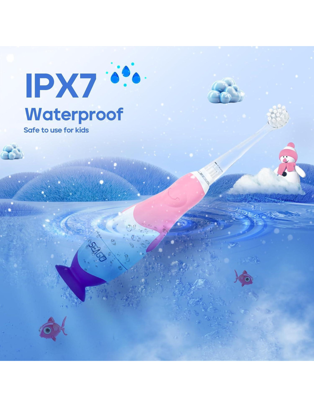 - Diseño Impermeable IPX7: Los cepillos de dientes eléctricos para niños Seago se pueden usar en la ducha. Larga duración de la batería soportada por batería AAA, Baterías no incluidas en el paquete, por lo que puedes usarlo de manera segura en el baño o la ducha