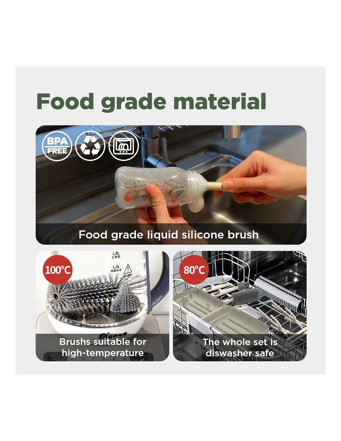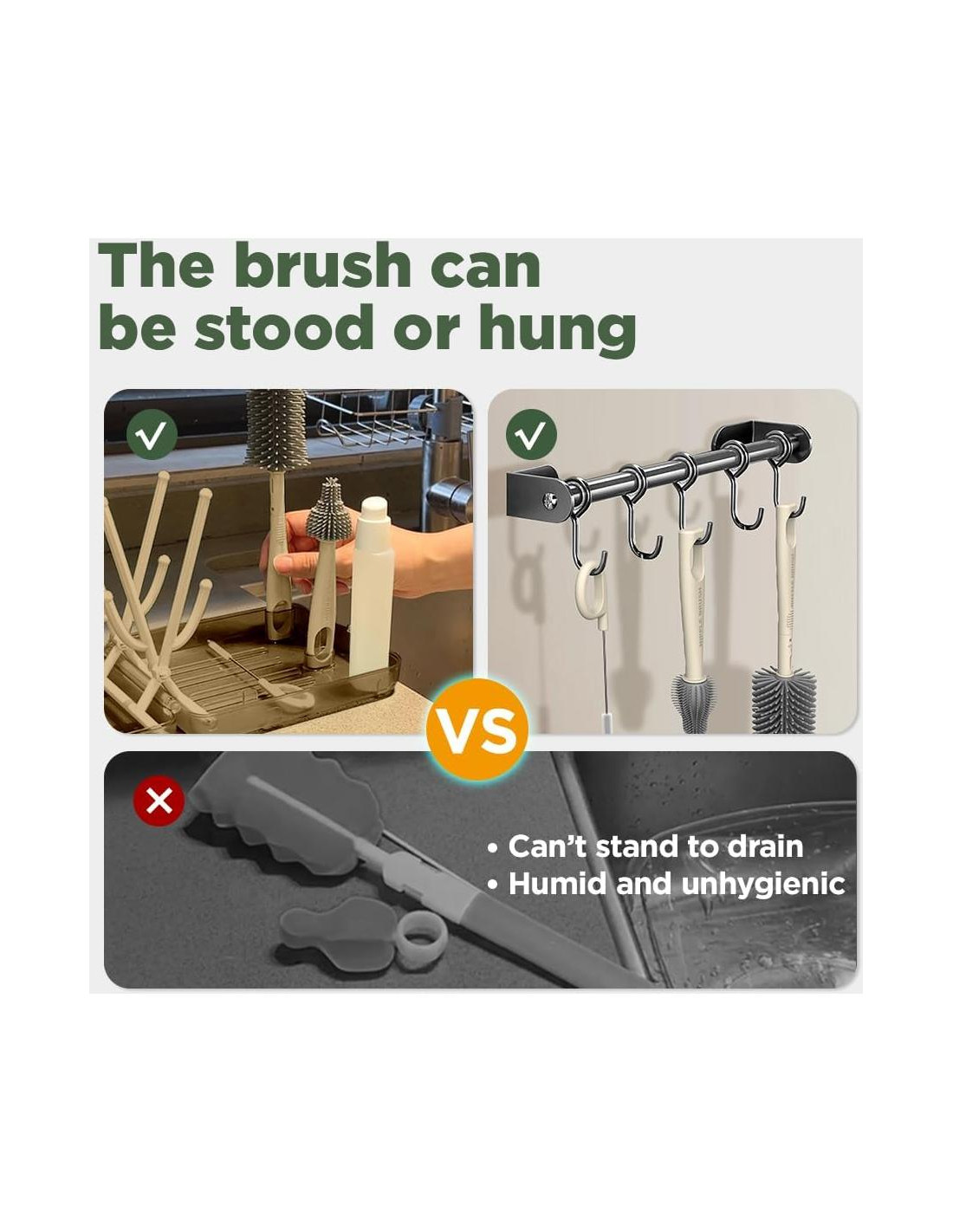 - [Cepillos de Silicona Líquida Duraderos] Hechos con silicona líquida, estos cepillos resisten mejor la acumulación que el nailon o la esponja. Son duraderos, fáciles de limpiar y suaves con las botellas-perfectos para cualquier kit de limpieza de botellas portátil.