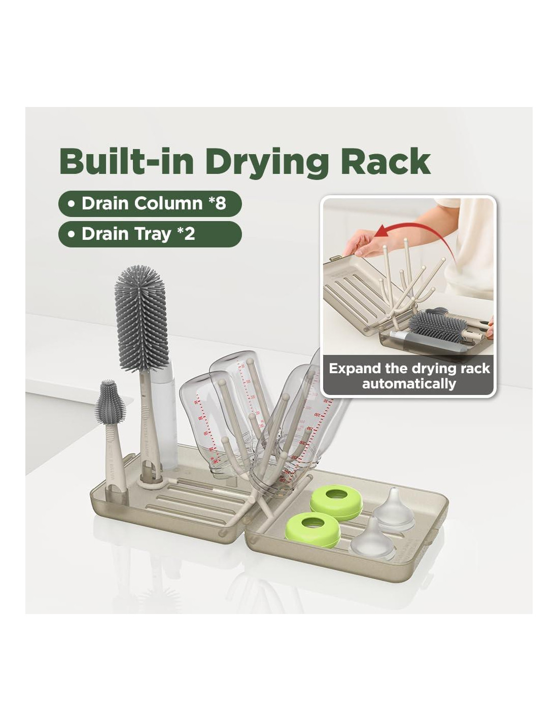 - [Soporte para Secado de Botellas Portátil y Autopopante] El soporte para secado se abre automáticamente con el estuche, ofreciendo una solución de secado rápida e higiénica en cualquier lugar. Compacto y ligero-perfecto para cualquier bolsa de esenciales de viaje para bebés.