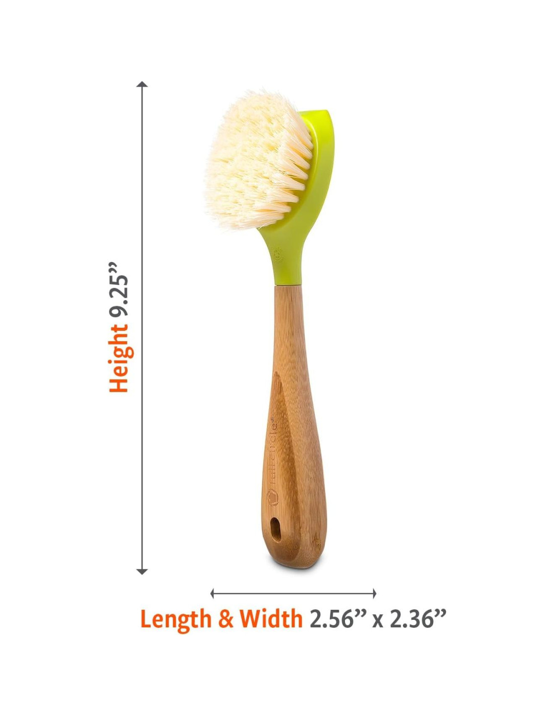 - Materiales No Tóxicos: Disfruta de tranquilidad con un cepillo de platos que utiliza plástico reciclado libre de ftalatos y un recubrimiento no tóxico en el bambú, asegurando la salud y seguridad de tu familia.