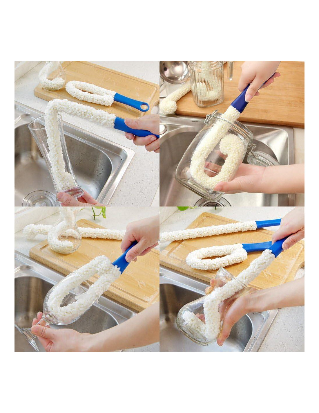 - MULTIPROPÓSITO-- Herramientas de Limpieza Multifuncionales Cepillo de Limpieza de Botellas Flexibles. Perfecto para copas de cuello estrecho, decantadores de vino, botellas de agua, vasos, tazas, cristalería, jarras y carafas.