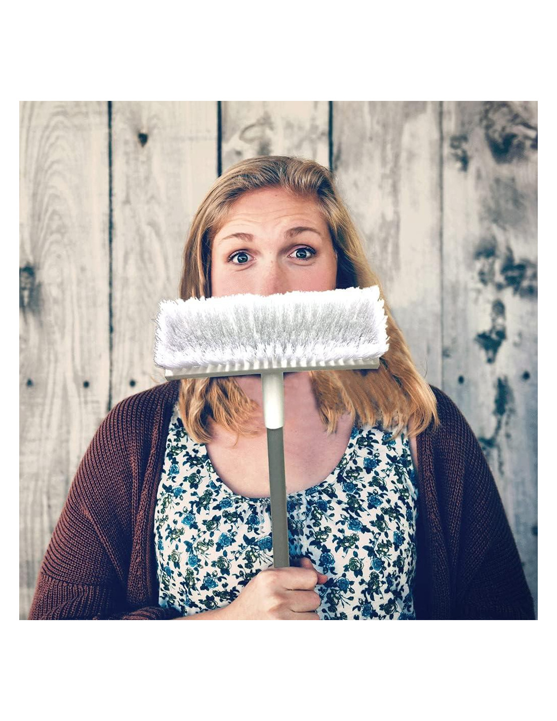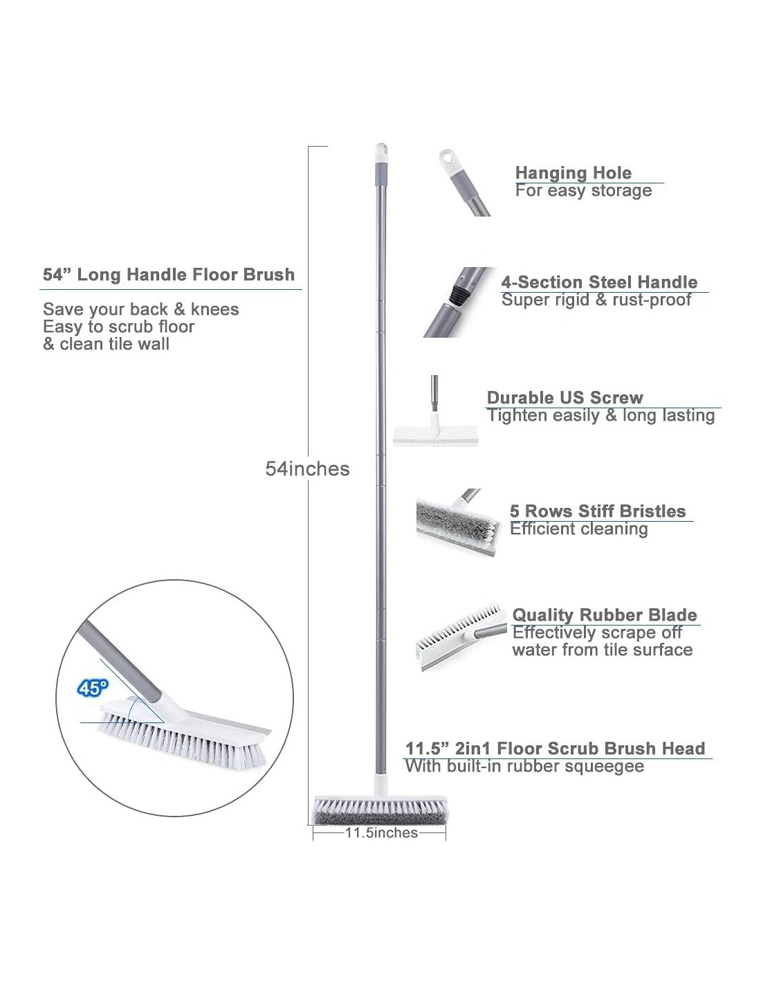 - Cerdas rígidas y diseño ergonómico - El cepillo de cerdas rígidas aborda eficientemente la suciedad en los pisos de ducha y limpia la lechada a fondo, mientras proporciona una fuerte acción de fregado para pisos de laminado y vinilo, alcanzando lugares que un trapeador regular podría perder. Además, el cepillo de fregado presenta un ángulo ergonómico de 45 grados entre la cabeza y el mango, lo que facilita alcanzar esquinas y ranuras, meterse debajo de los gabinetes y limpiar detrás del inodoro para un trabajo más completo.