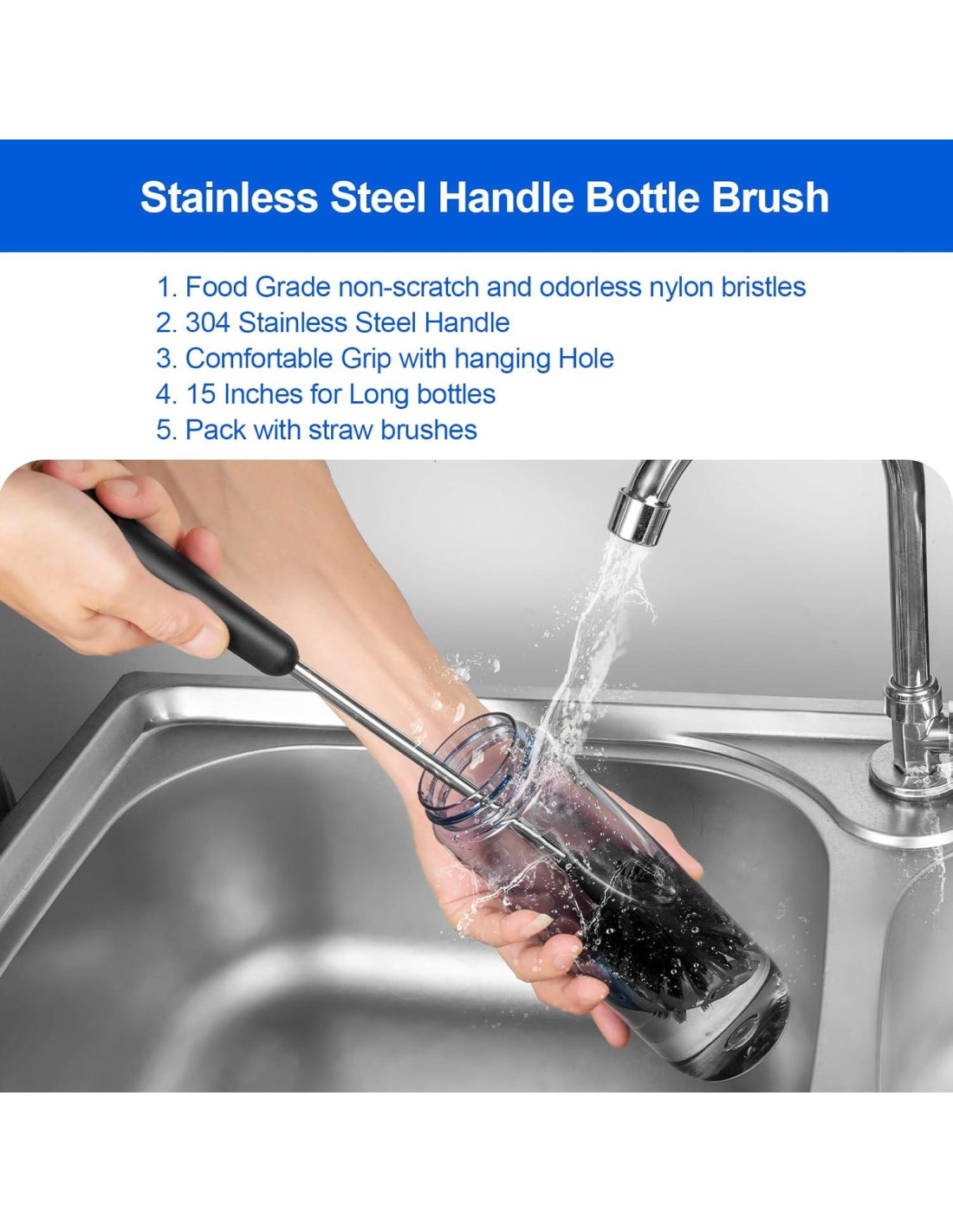 - [Incluye paquete] El paquete incluye 1 cepillo para botellas con mango largo. Si tienes alguna pregunta durante el pedido o al usar este cepillo de limpieza para botellas de agua, no dudes en contactarnos. Resolveremos cualquier problema en 24 horas.
