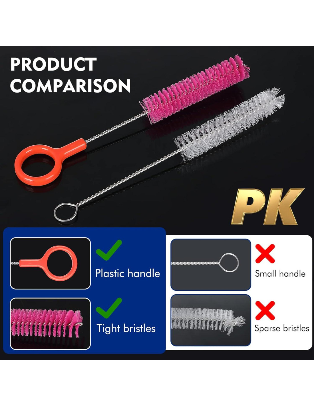 - [Fácil de usar] El cepillo largo flexible de dos extremos, todo con mango de acero inoxidable, movimiento flexible y proceso de torsión, ideal para tubos doblados y en forma de U, persistente y sin deformación. Pequeño lazo mejorado hecho de plástico para hacer que tirar de la cabeza del cepillo a través de la manguera sea seguro y fácil. ¡Proporciona una experiencia de limpieza cómoda y ligera!