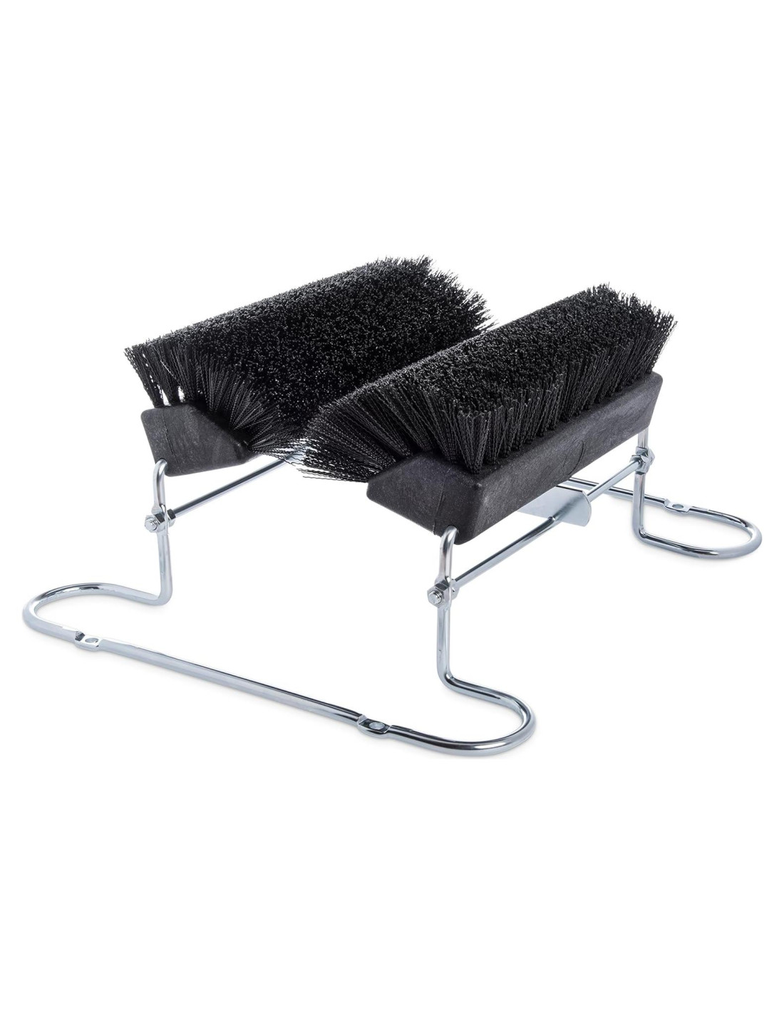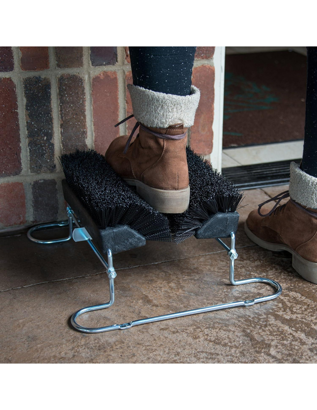 Antes de entrar a su casa o lugar de trabajo, limpie la tierra y los escombros de las botas y zapatos utilizando los cepillos angulados de nuestro cepillo Spectrum Boot 'N Shoe. Las piezas más grandes de tierra y escombros pueden ser raspadas con la ayuda del raspador de acero debajo del cepillo. Para un uso prolongado y continuo, tanto el bloque como las cerdas están compuestos de plástico resistente de grado comercial. Para una instalación segura, el marco puede ser fijado al suelo utilizando hardware de montaje que se ofrece por separado. El marco está compuesto de tubos de acero cromado.