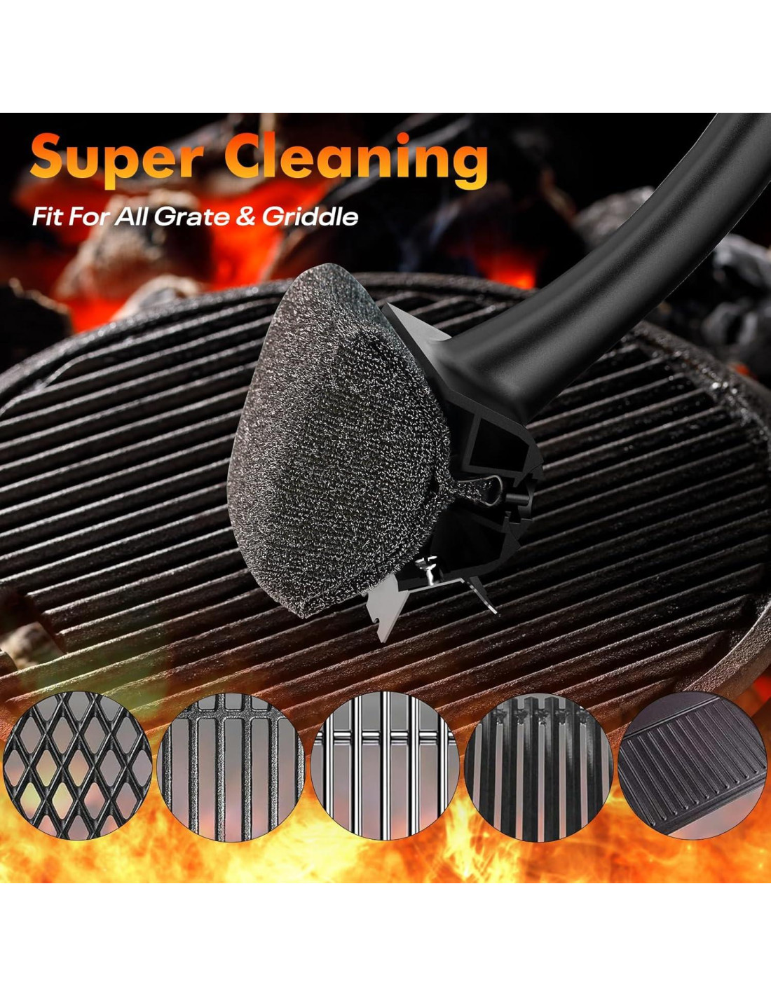 - Cabezal de esponja de limpieza sin cerda resistente al calor - La superficie de nuestro cepillo de parrilla sin cerda no desprende alambres peligrosos en la comida - eliminando el riesgo de ingerir cerdas metálicas. La opción más segura para familias preocupadas por la salud