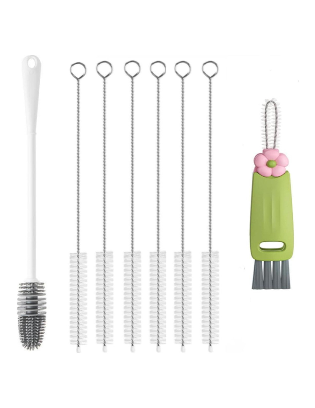 - Componentes incluidos: cepillo de pajita, cepillo de botella de agua, cepillo de tapa