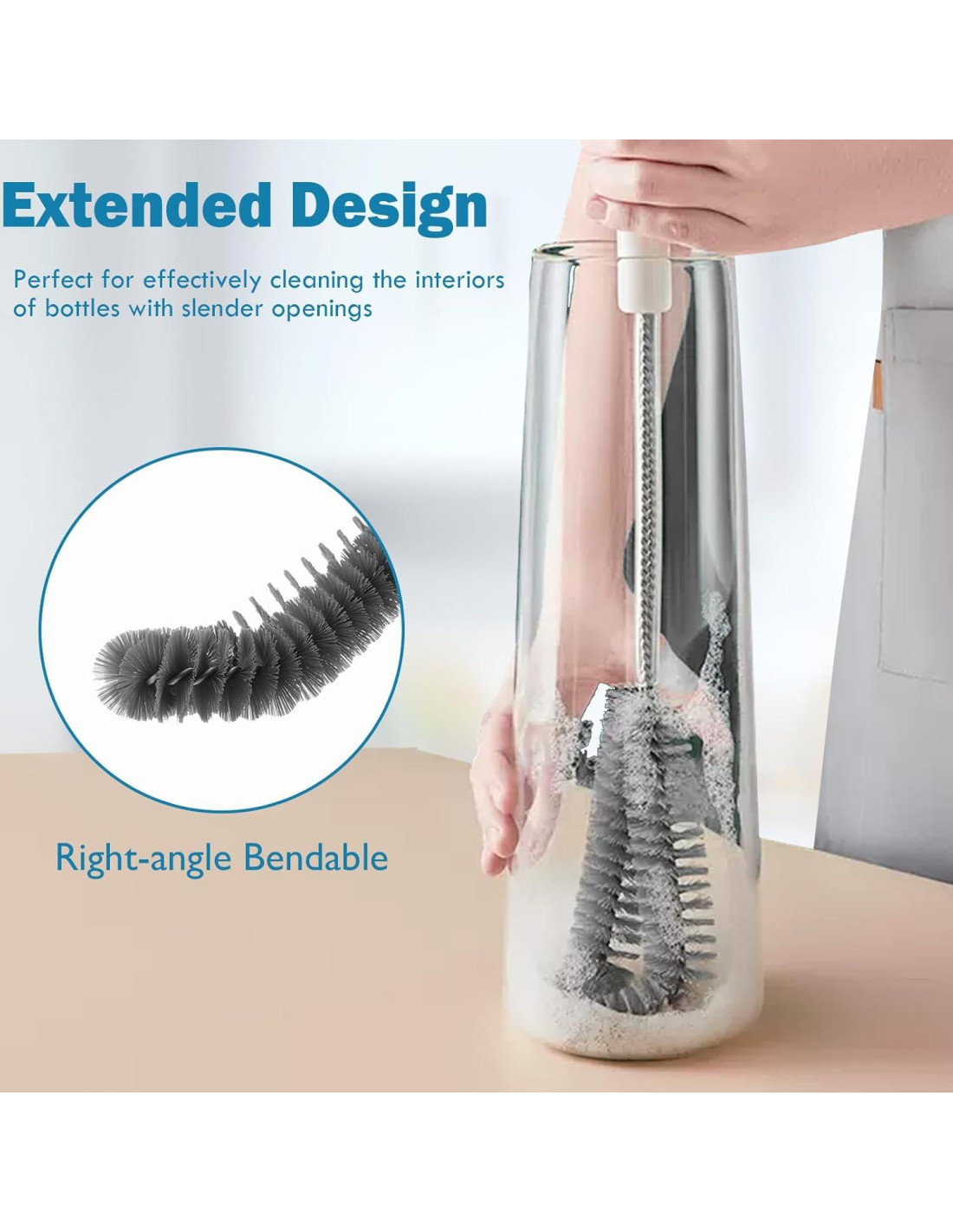 - Diseño Versátil: La cabeza del cepillo en ángulo recto y flexible permite un mejor acceso a las esquinas de las botellas, eliminando eficazmente la suciedad incrustada de los recipientes.