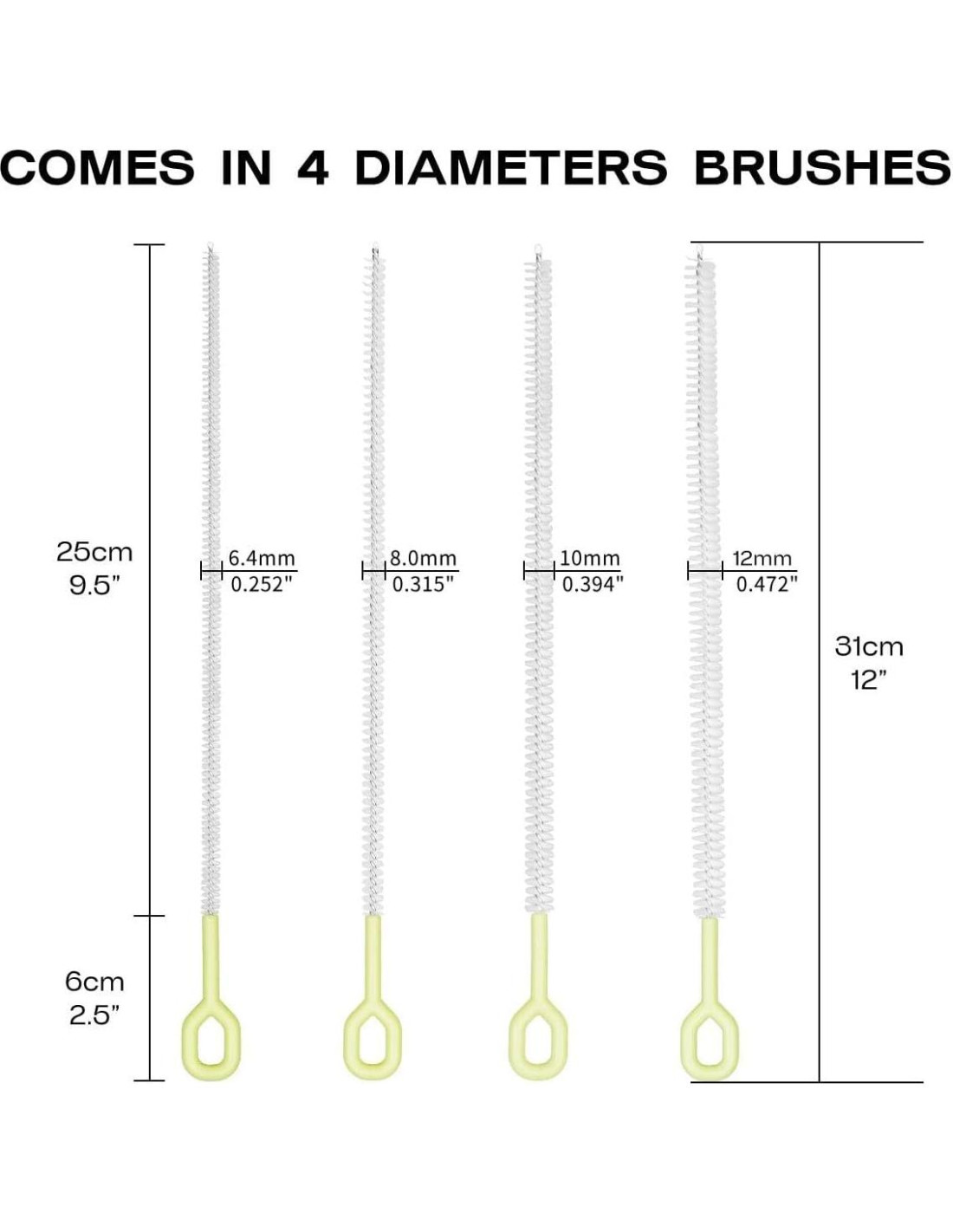 - Tamaños Versátiles: cepillos para popotes de 30.48 cm vienen en 4 diámetros: 6.4 / 8 / 10 / 12 mm, encontrarás uno que funcione perfectamente para tus popotes reutilizables; las cerdas flexibles y resistentes son gruesas y se extienden a lo largo, funcionan bien para popotes regulares o doblados