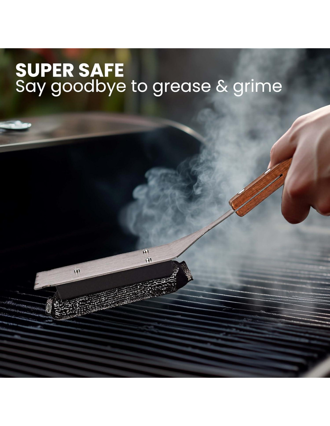 - Mango de Madera de 16" (40.64 cm) Extendido: El mango de madera extra largo de 16" (40.64 cm) proporciona un agarre cómodo y mantiene sus manos a salvo del calor. Su alcance extendido lo hace ideal para limpiar grandes superficies de parrilla. Ligero y resistente, asegura una limpieza segura y eficiente.
