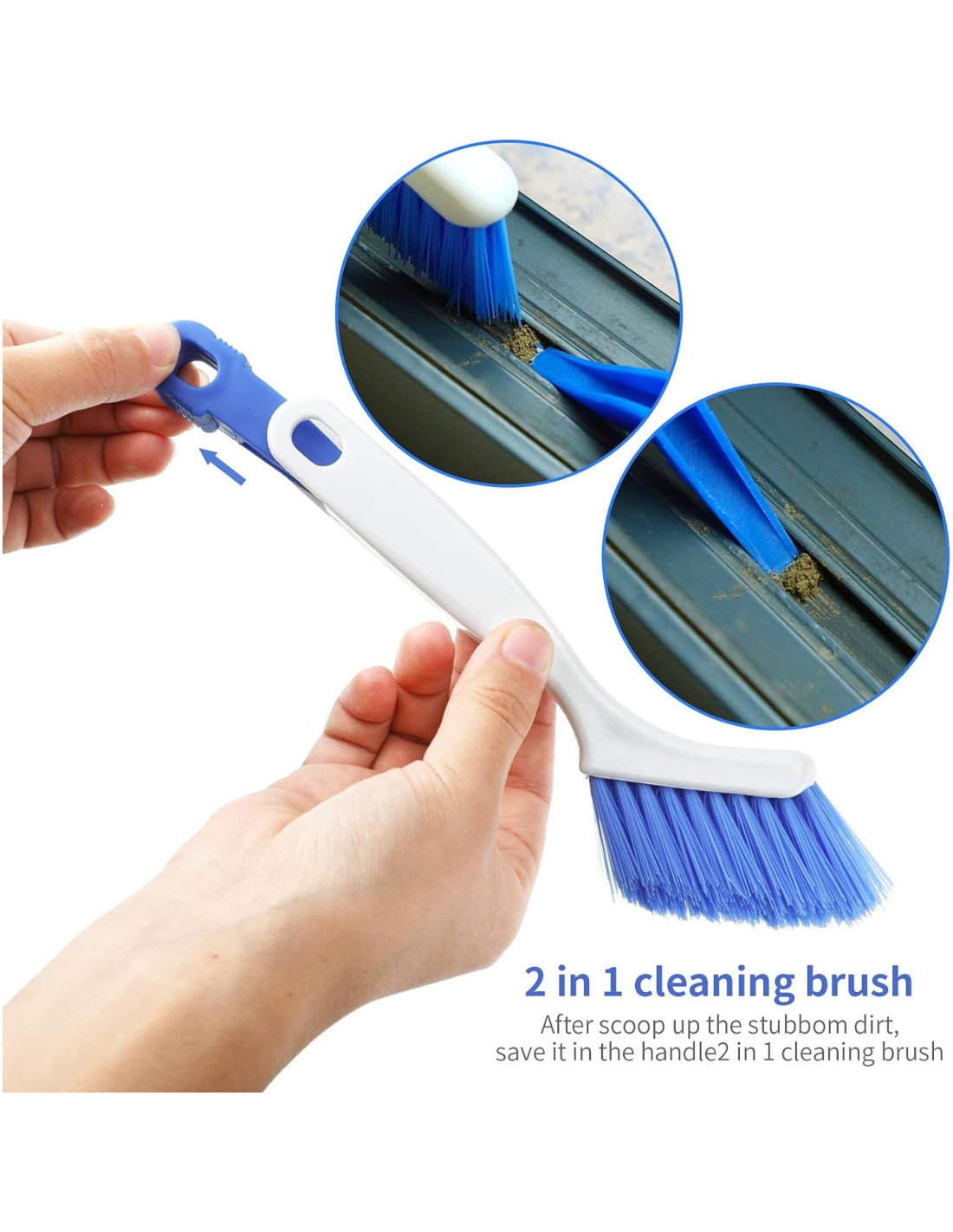 - Cepillo de Ventana/Puerta 2-en-1: el cepillo de limpieza de ventanas limpia los rieles de ventanas, puertas deslizantes y puertas de ducha de manera más fácil y rápida. Diseño 2-en-1, herramienta de limpieza de cepillo desmontable con extremo de cepillo de cerdas estrechas suficiente para barrer la suciedad suelta, el otro extremo raspador para desalojar la suciedad obstinada en las esquinas, conjunto de cepillo y recogedor de polvo, también puede ser desmontable, conveniente y fácil de almacenar